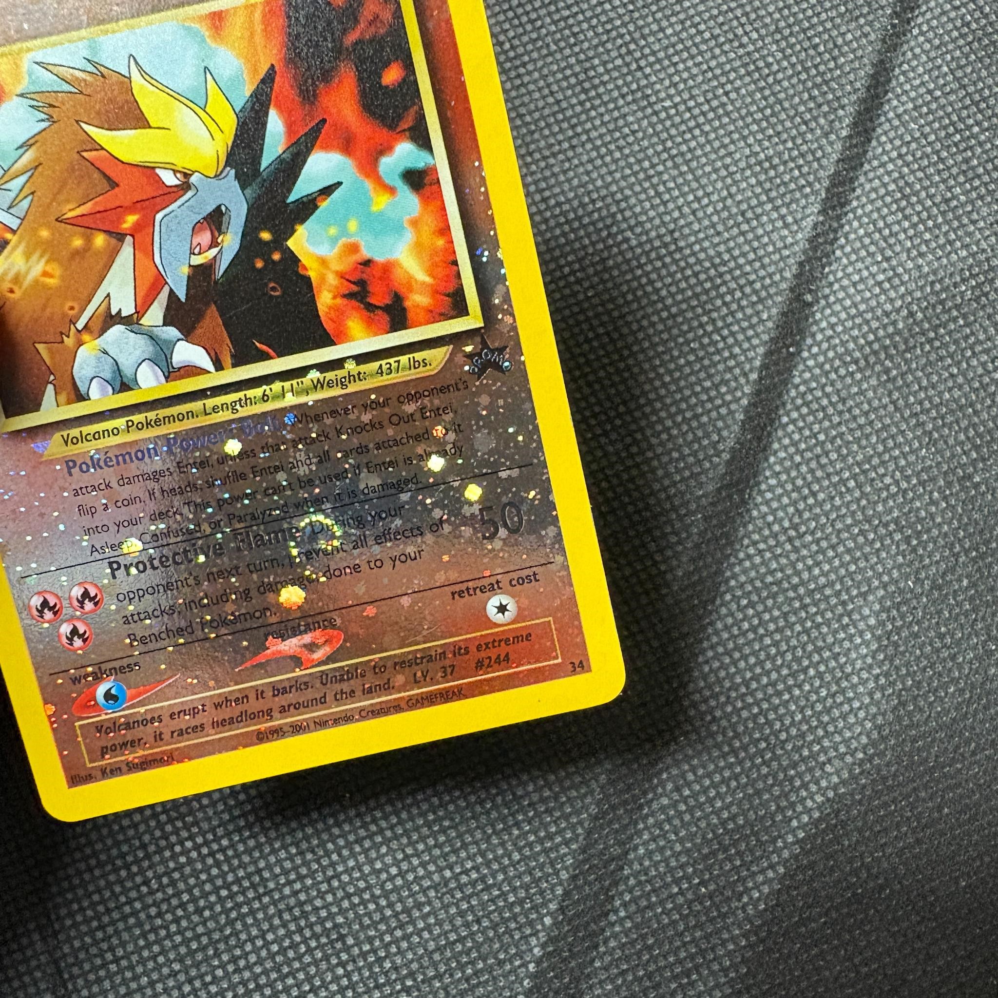 Lot of Entei Pokemon Cards. Includes WOTC Black Star Promo Entei #34 with Swirl.
