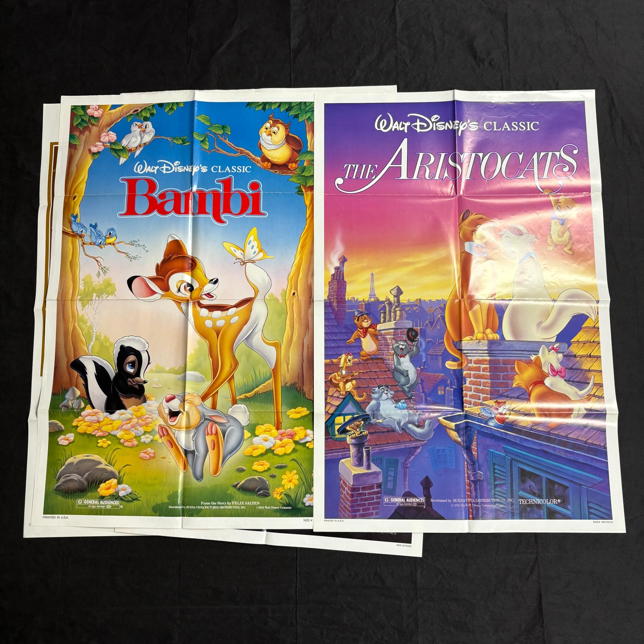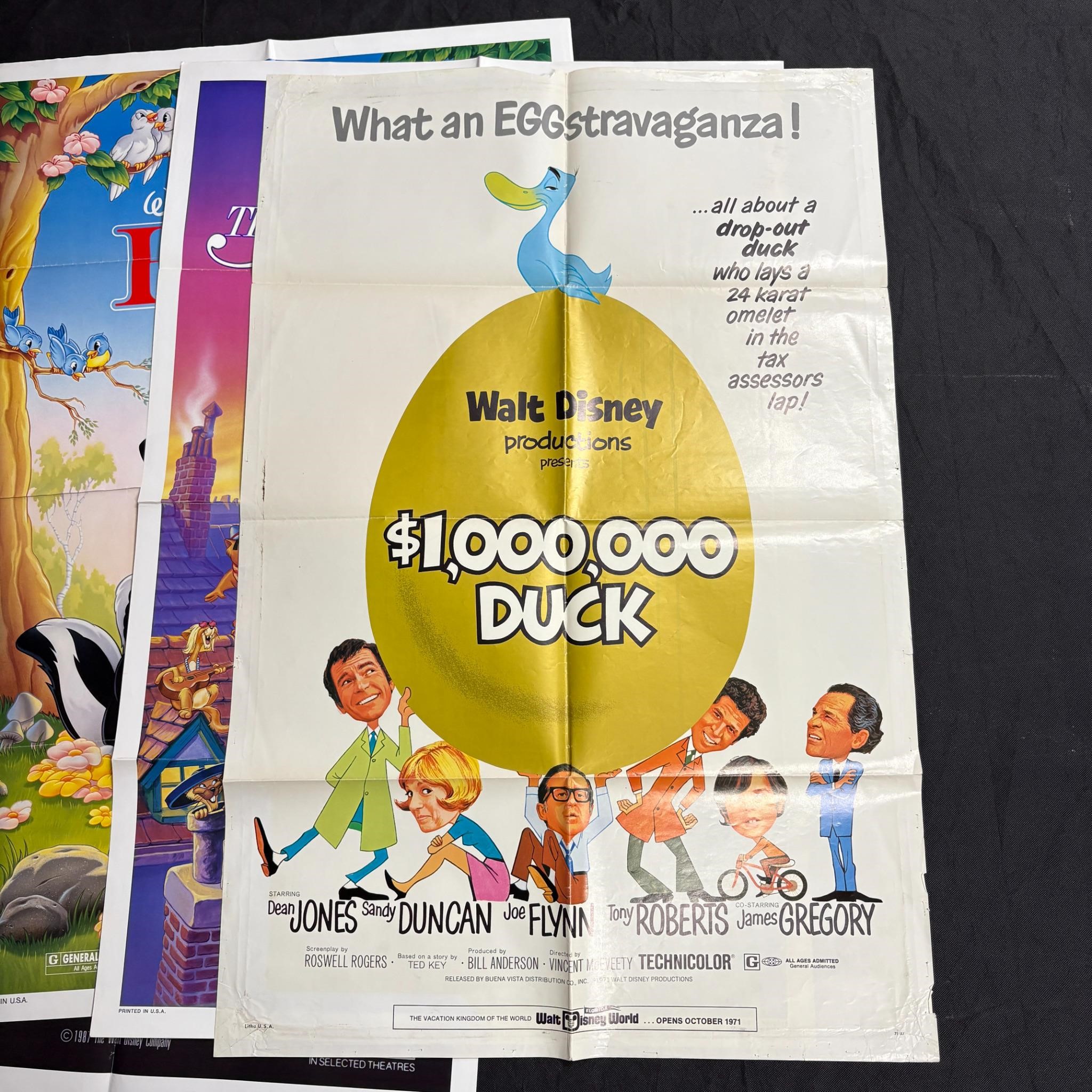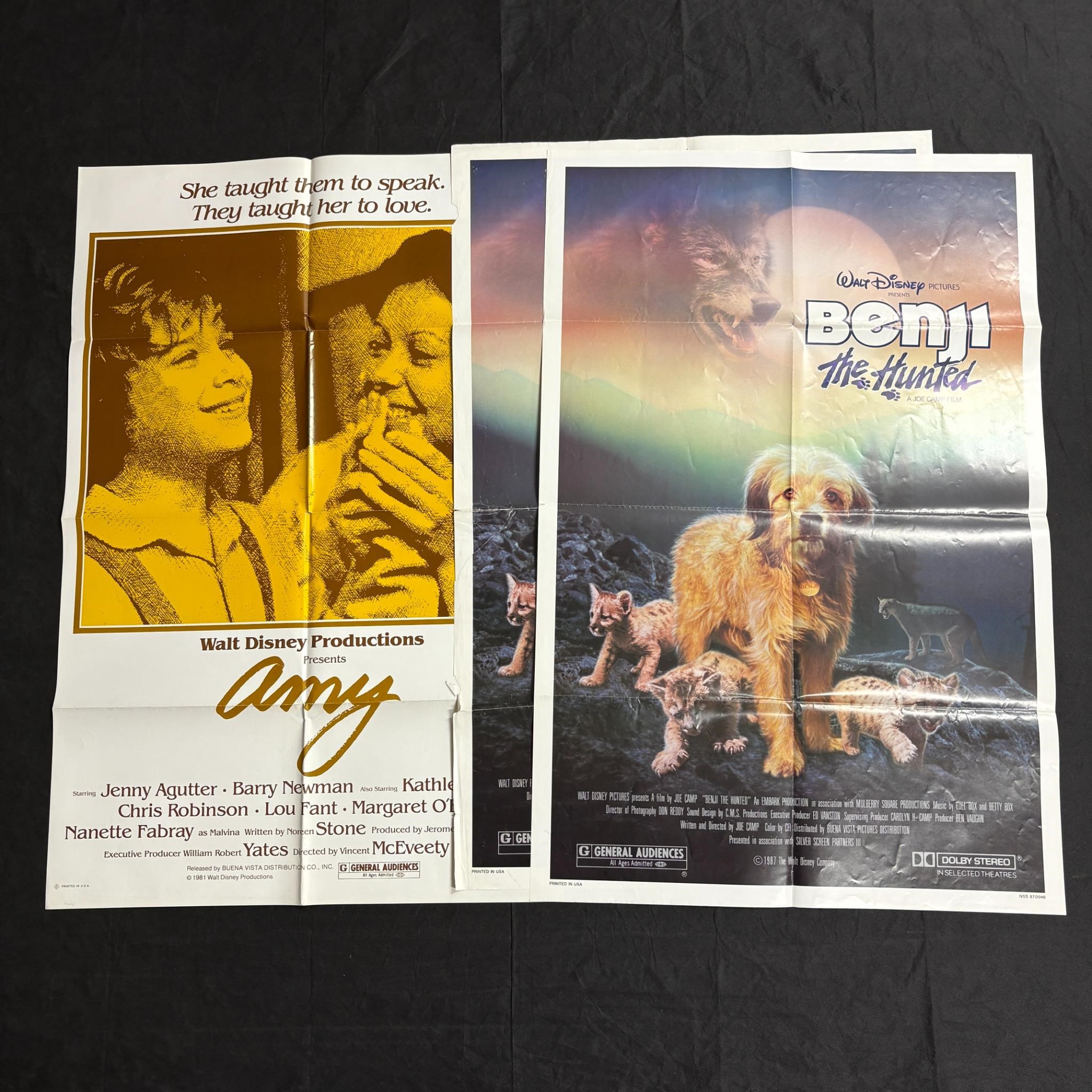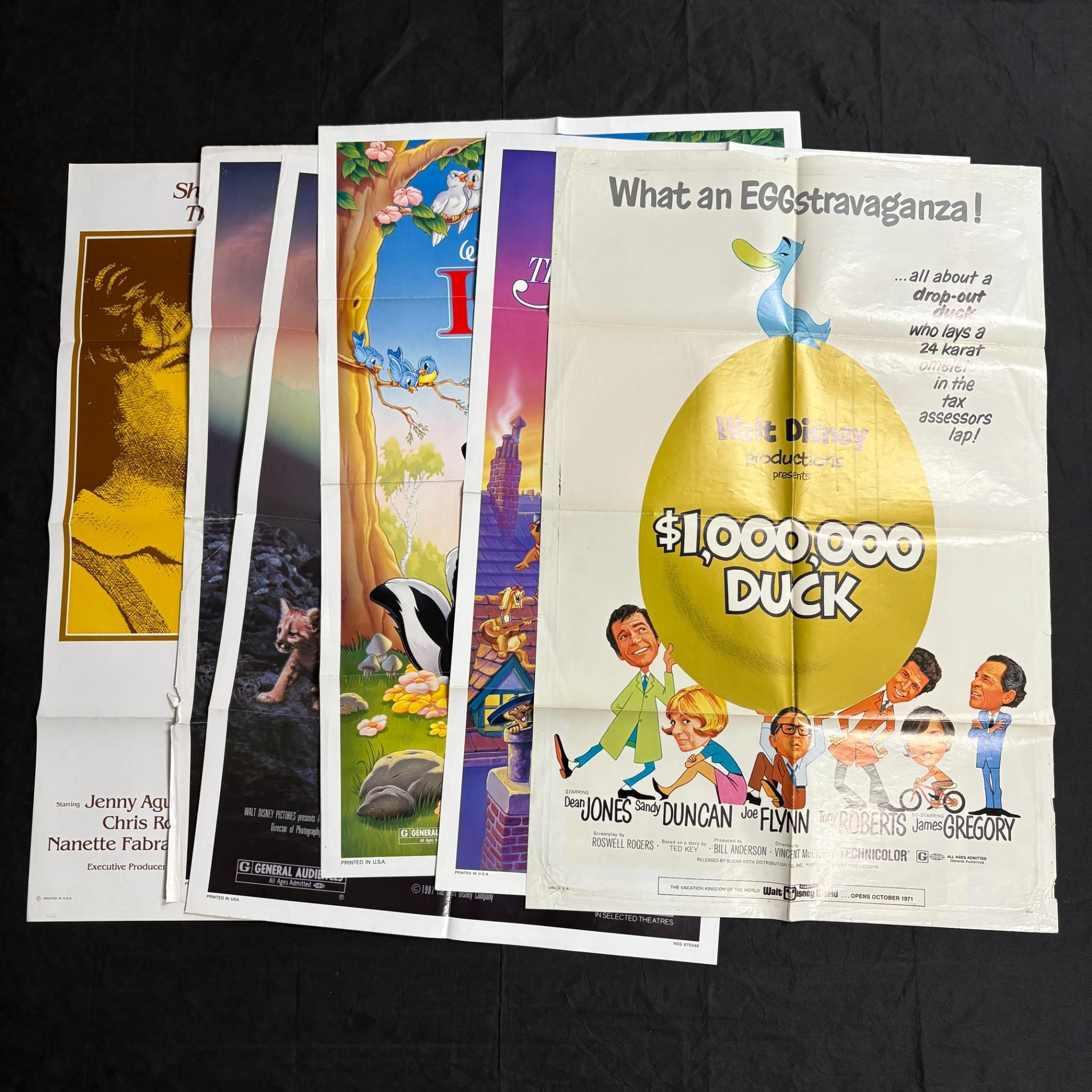 Lot of original 1970s-1980s Disney One Sheet Movie Poster. sIncludes $1 Million Dollar Duck, The Aristocats, Bambi, Benji x2, and Amy.