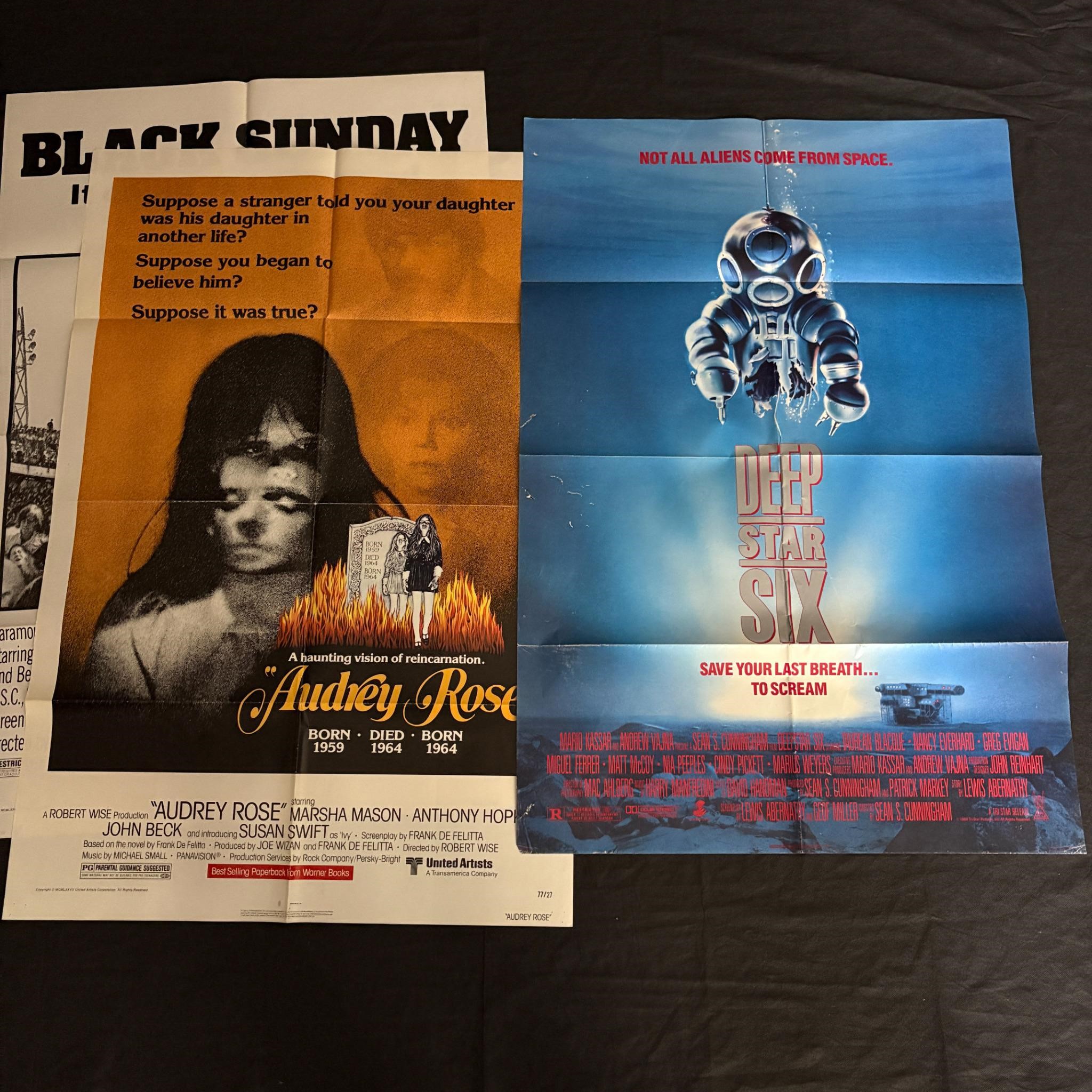 Includes Alien Prerelease Poster, The Beast Within 1 sheet revised, Deep Star Six, Audrey Rose, Black Sunday. One Sheet Movie Posters.