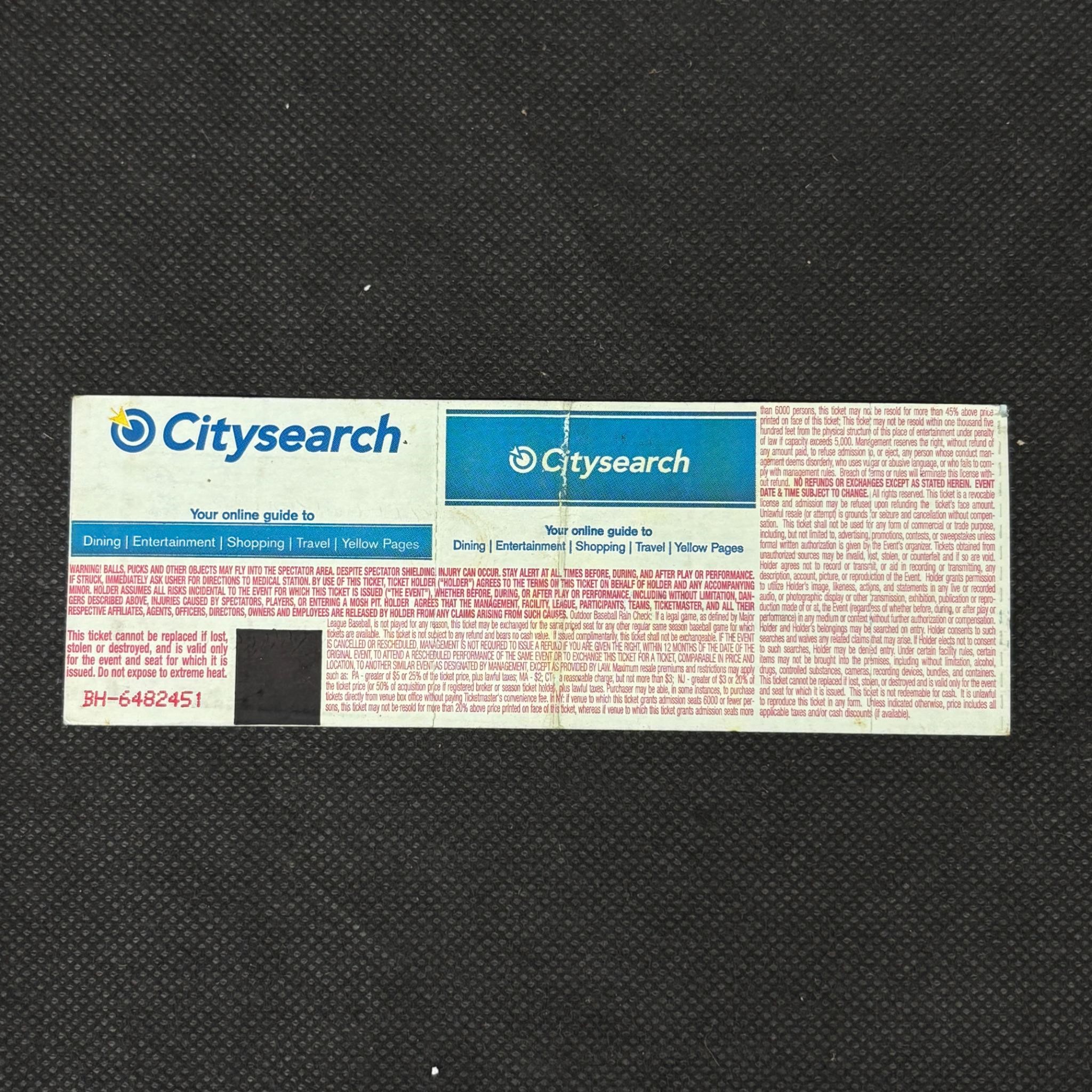Lynard Skynard Bandmate Signed Concert Ticket