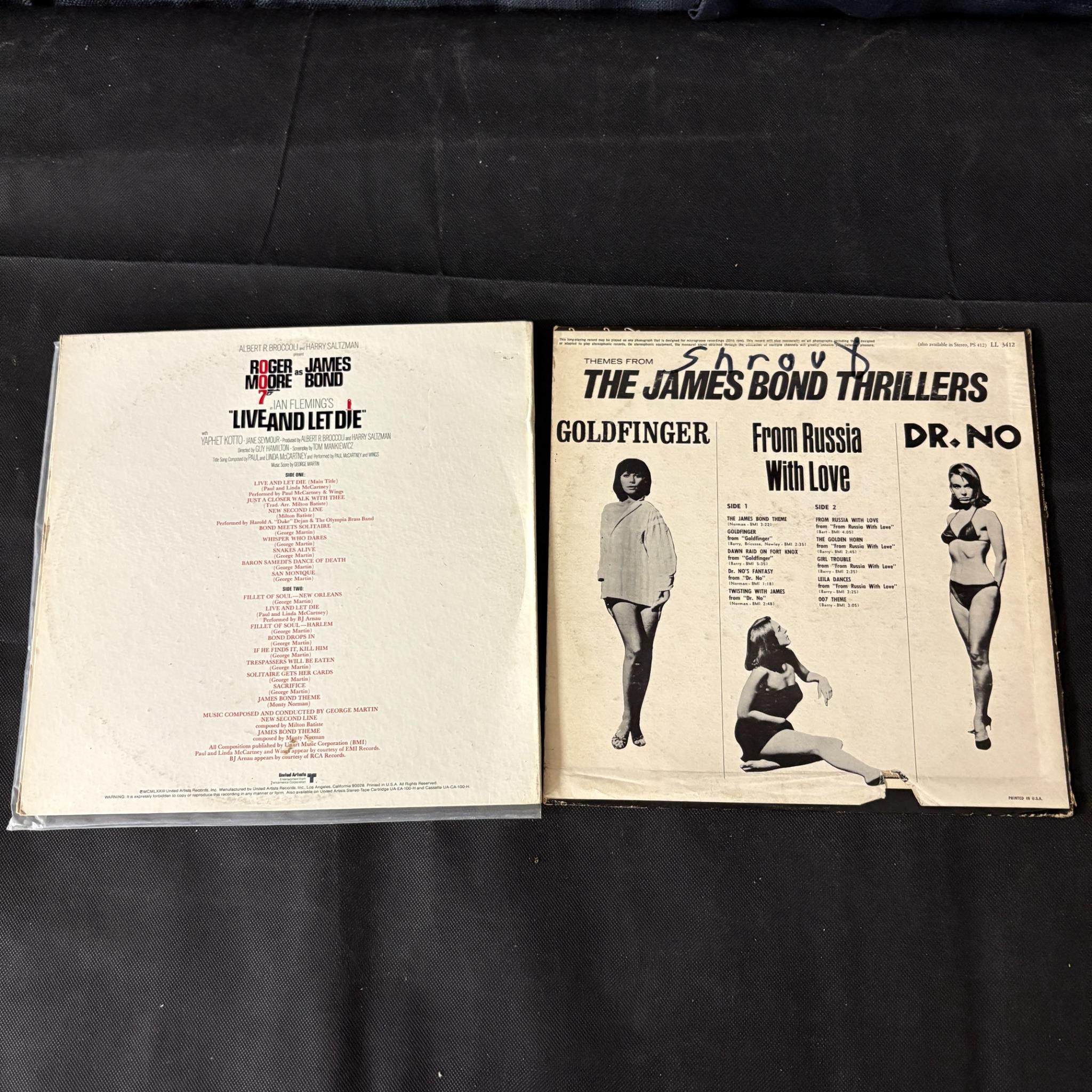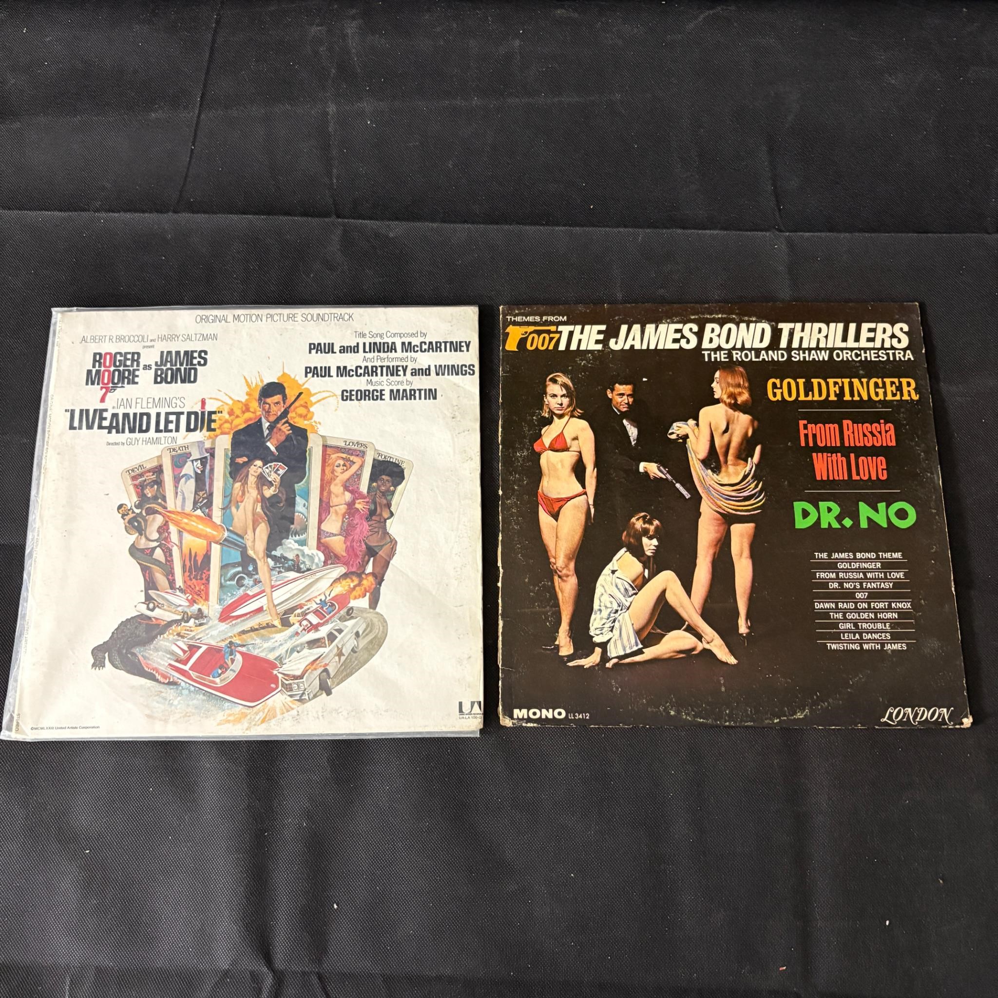 Includes James Bond Thrillers Gold Finger, From Russia with Love, and Dr. No Sound Track Record, And Live and Let Die Sound Track Record.