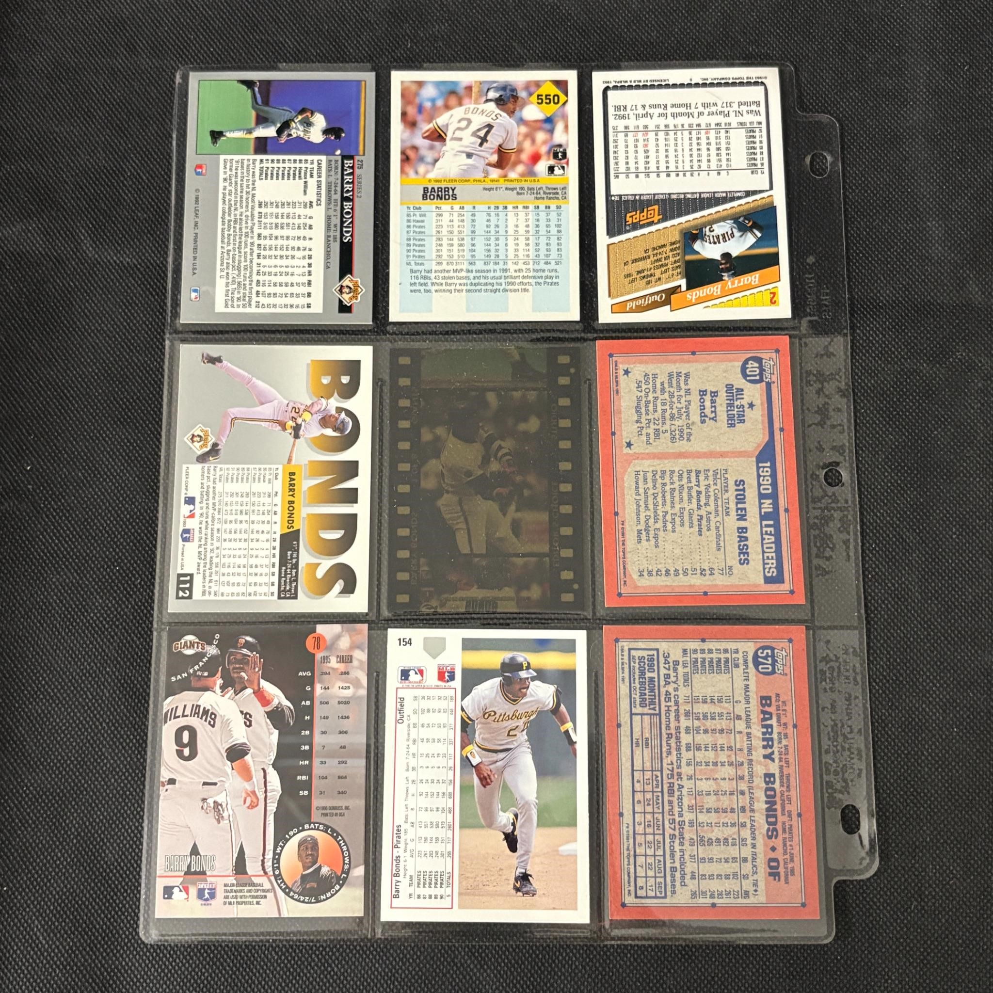 SHEET OF 9 BARRY BONDS CARDS