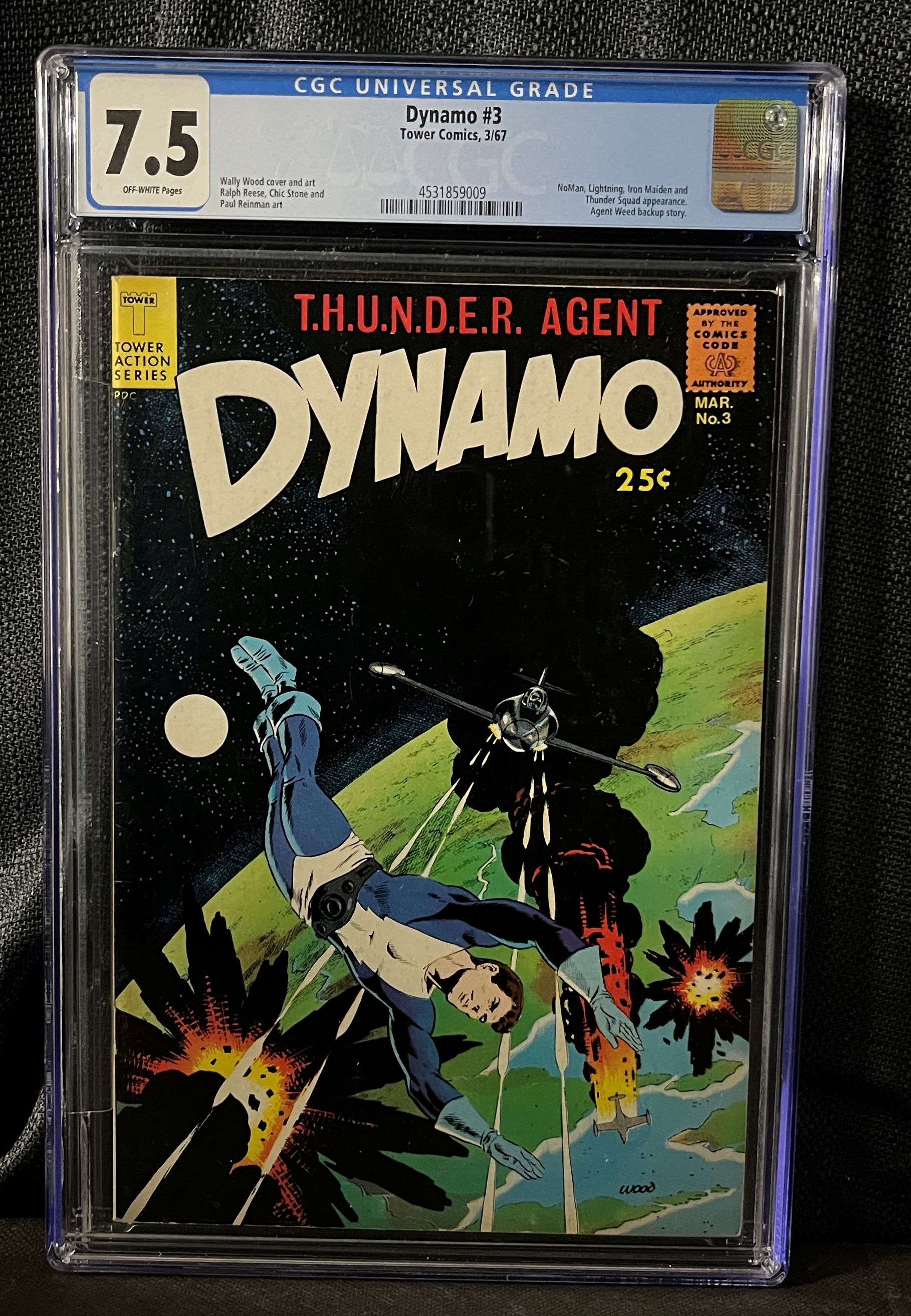 CGC Graded Dynamo #3, Tower Comics, March 1967, Wally Wood Cover & Art, 7.5 OFF-WHITE Pages