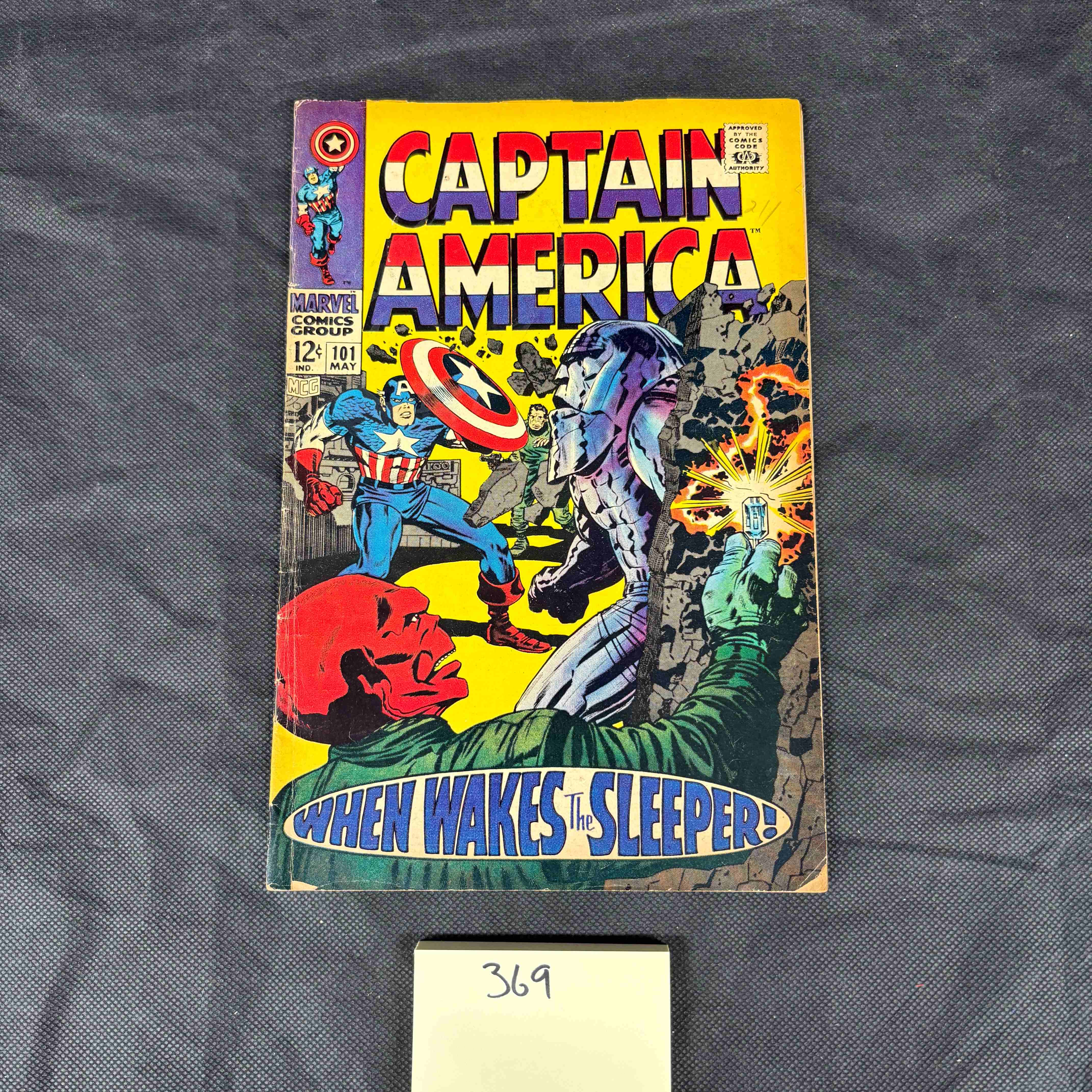 A copy of Marvel Comics Group’s *Captain America*, issue #101, published in 1968. The comic was retailed at 12¢ with a visible ‘MAY’ indication. The front cover art depicts Captain America in action against a silver-skinned character and the Red Skull, accompanied by the tagline “WHEN WAKES THIS SLEEPER!” and the “APPROVED BY THE COMICS CODE AUTHORITY” seal. The back cover features a multi-panel advertisement for “AMERICAN SEED CO.” promoting “MAKE MONEY GET PRIZES” by selling seeds, showcasing various merchandise.