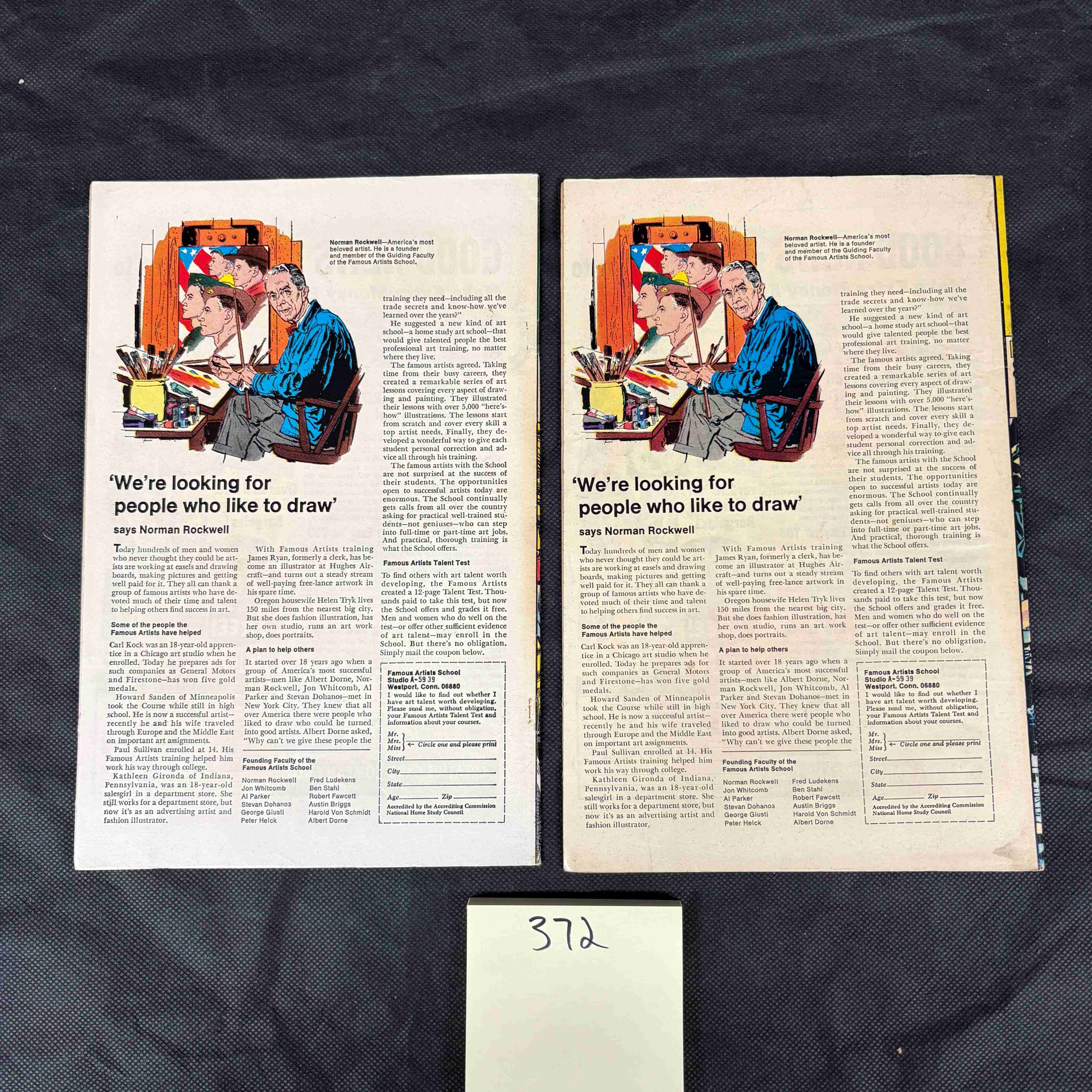 Both comics are in good, age-appropriate condition. They exhibit minor wear to the edges and spines, consistent with their age and handling. Pages are intact, and colors remain generally vibrant. No significant tears, major creases, or restoration are apparent.