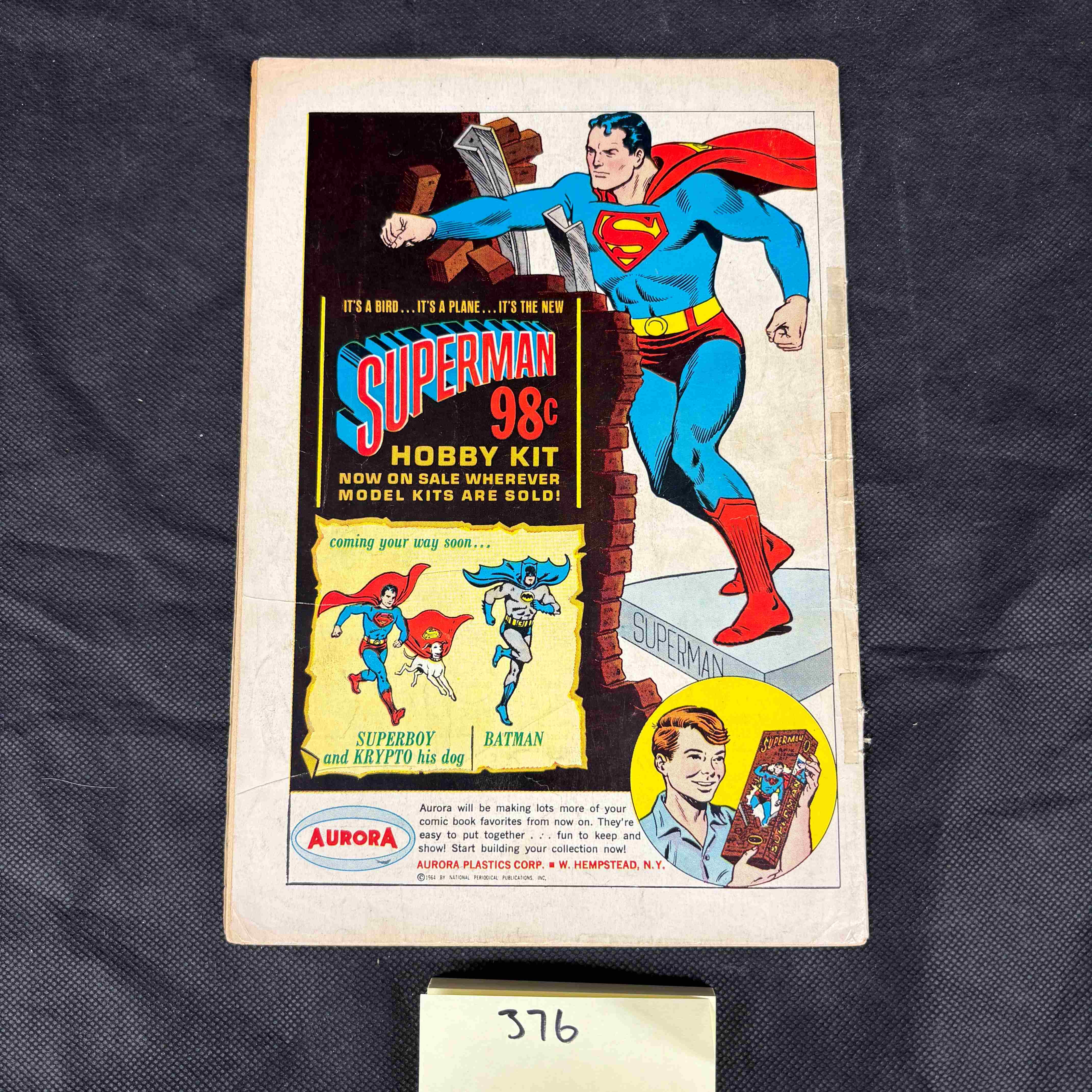 Good overall condition for its age. Visible creasing to covers and spine. Edge wear and minor tears present, particularly along the edges and spine. Some discoloration and foxing consistent with a handled vintage comic book.