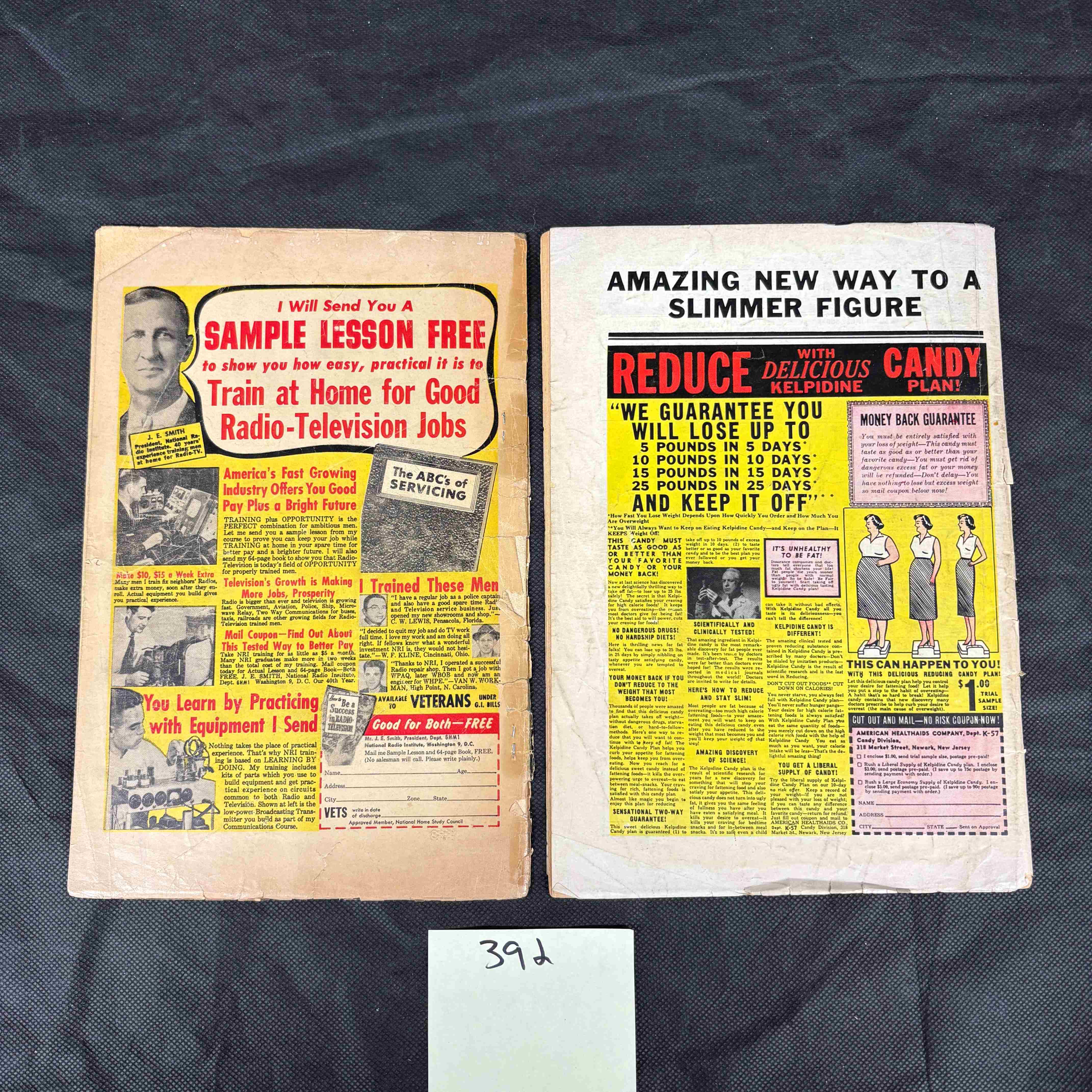 A small white notecard with "392" handwritten in black marker is present with the lot.