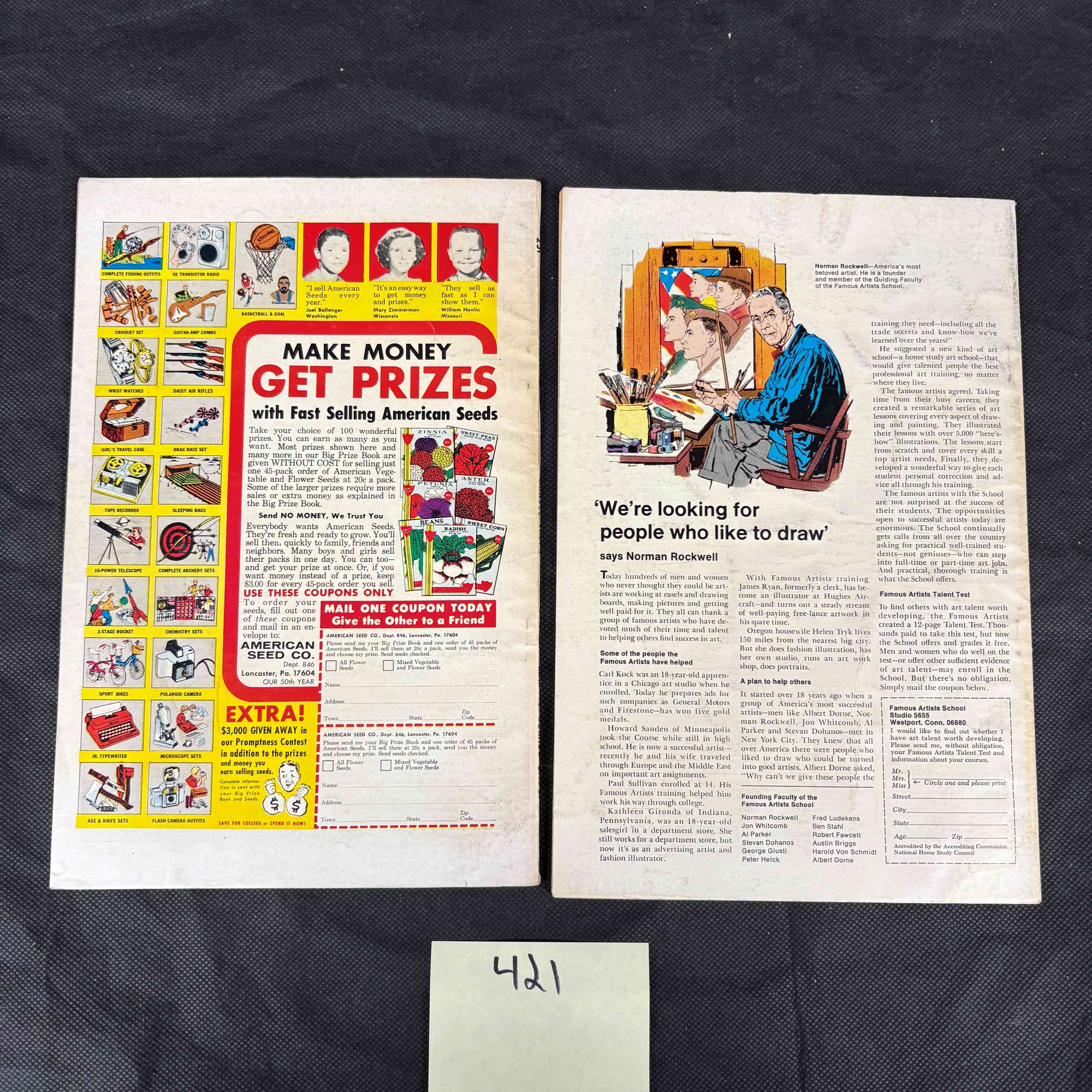 Good condition. Both comics exhibit minor creasing, edge wear, and some discoloration consistent with age and circulation. Colors remain relatively vibrant.