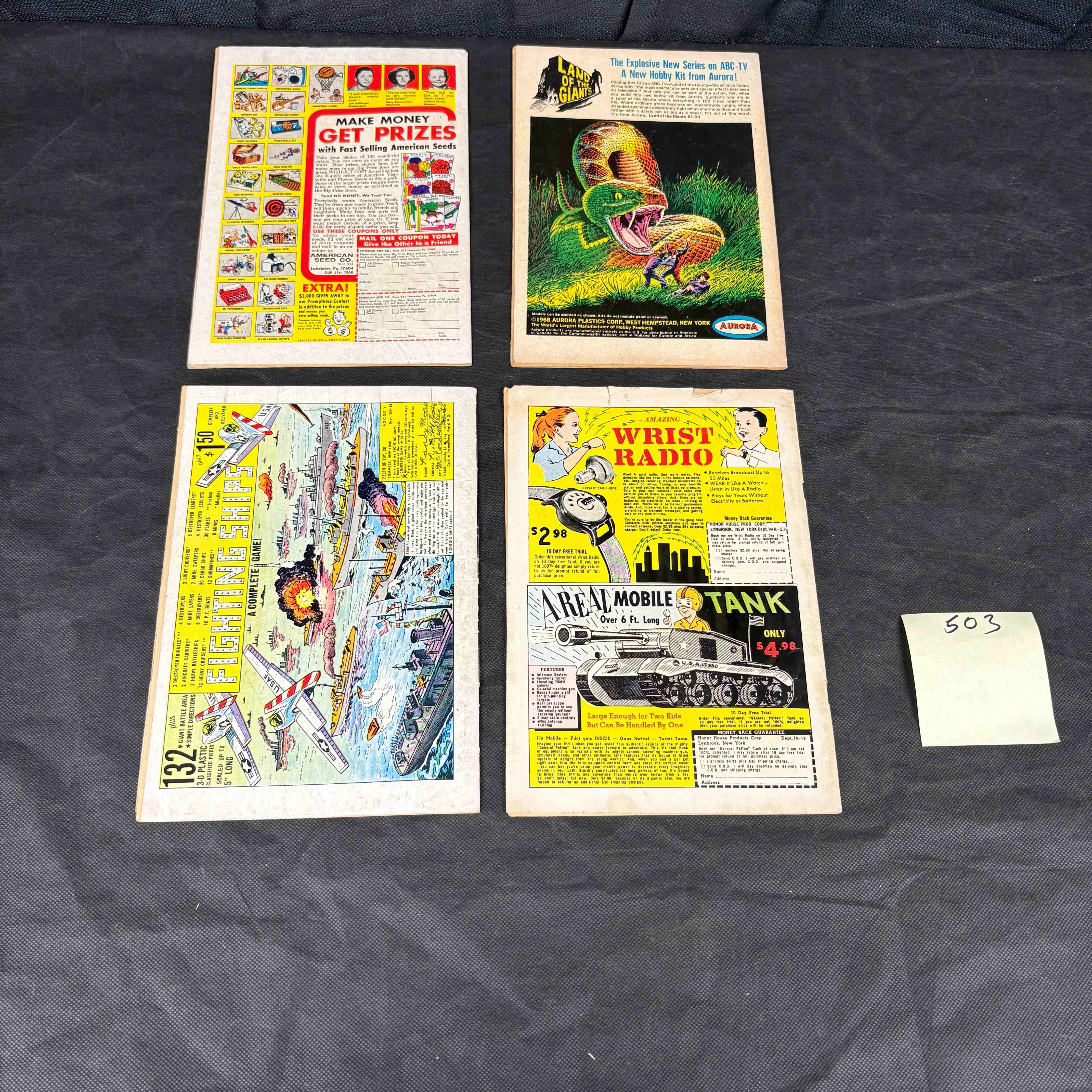 Good to Very Good condition, showing signs of moderate age and handling. Each comic exhibits creasing, edge wear, and spine stress. Discoloration and foxing are present on the paper. All issues appear complete.