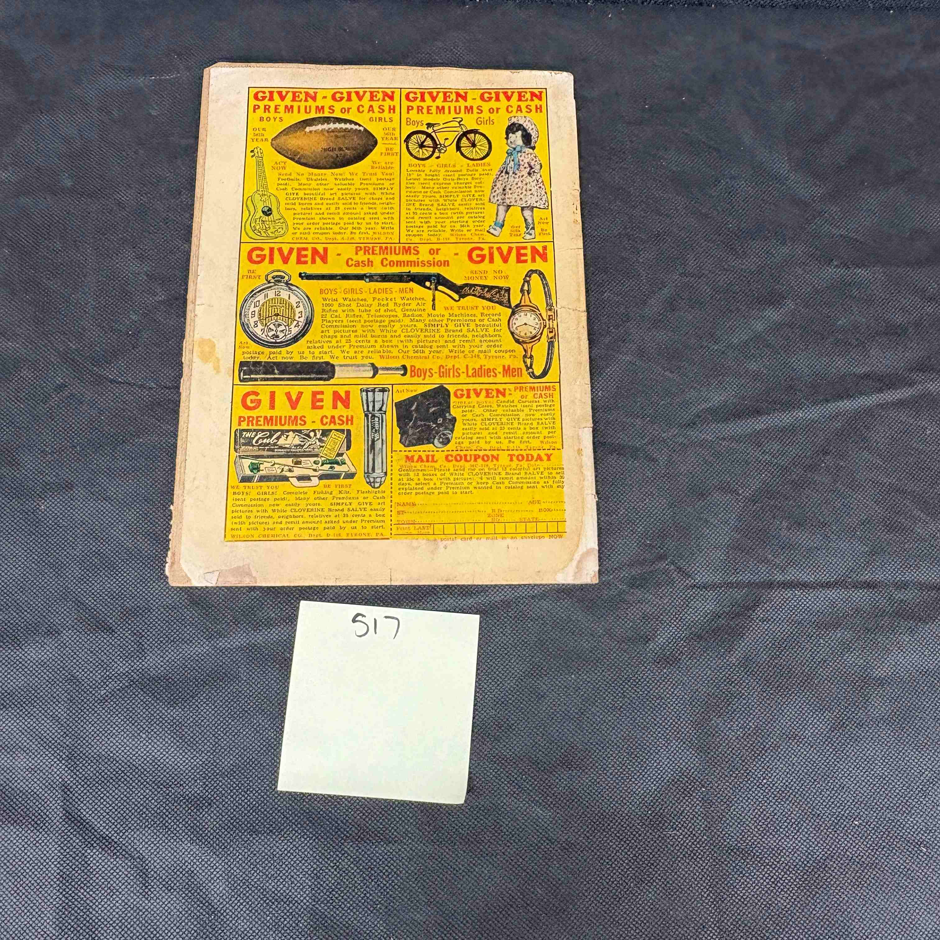The Arizona Kid (1951) No. 6 comic book, published by Atlas Comics (Marvel). This issue features a 10-cent price. The front cover showcases a Western adventure-style illustration depicting three cowboys engaged in a brawl within a saloon. Speech bubbles contain the dialogue: “HEY, MALONE, THE SAR COTTA GET ROUGH!” and “WON’T DO HIM ANY GOOD! WE’LL SLUG IT OUT ANYWAY WHEN HE’S FINISHED!”. The artist’s signature, “J.K. Masters,” is visible at the bottom right of the artwork. The back cover displays a full-page, multi-panel advertisement for “GIVEN PREMIUMS or CASH,” illustrating various prizes such as a football, bicycle, doll, and watch, with a “MAIL COUPON TODAY” section at the bottom. The comic book is constructed from stapled paper.