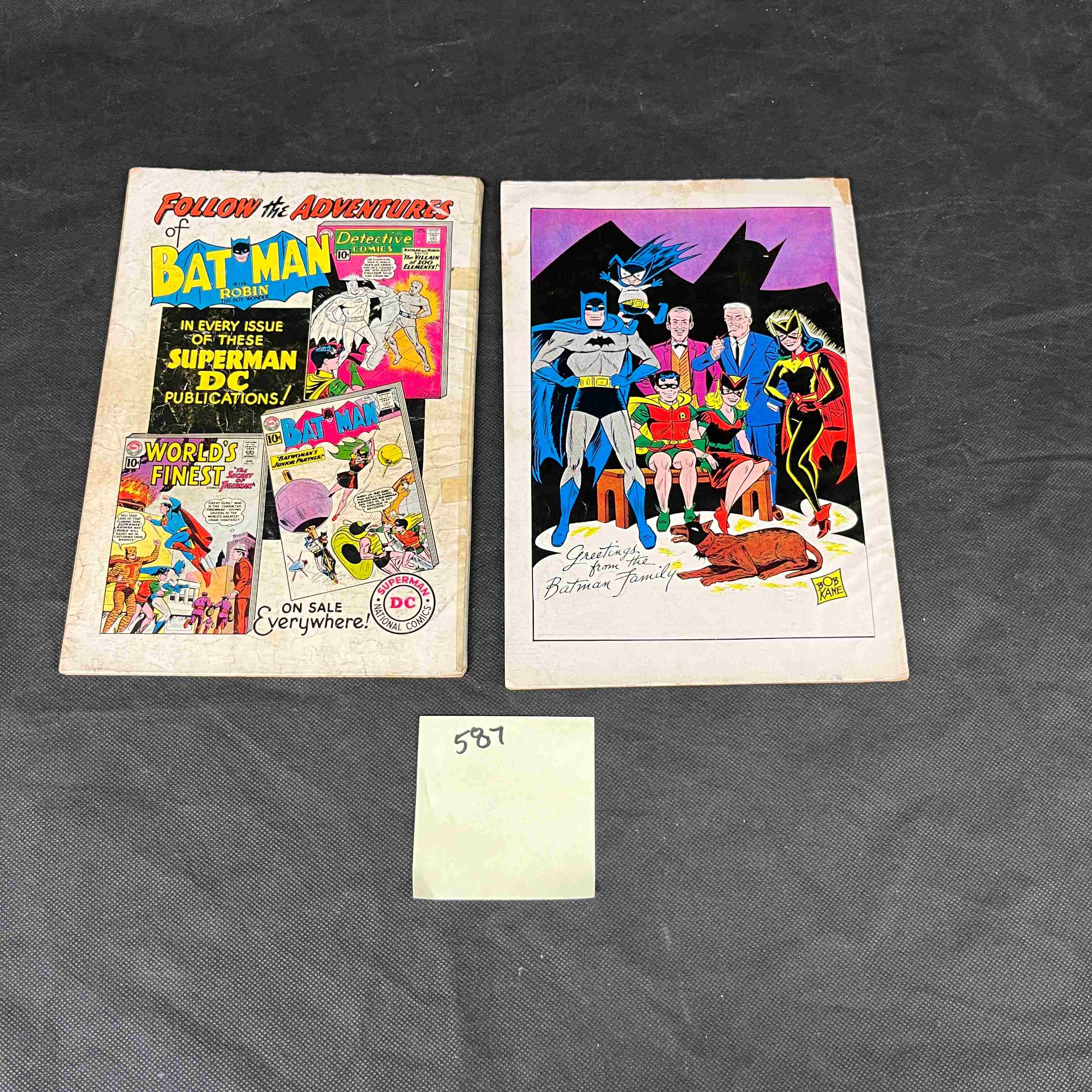 Fair to Good condition commensurate with age and use. Both comics exhibit significant signs of age and use, including creasing, spine stress, edge wear, and discoloration on the covers and pages.
