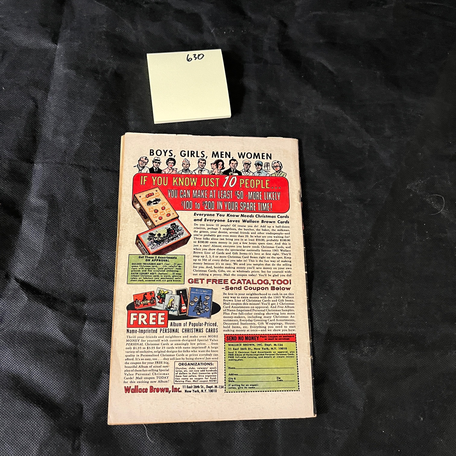 A Silver Age comic book titled ‘The Amazing Spider-Man,’ issue number 28, published by the Marvel Comics Group in September 1965. This issue features the first appearance of The Molten Man, depicted on the dynamic front cover engaging Spider-Man. The cover also prominently advertises ‘Peter Parker’s Graduation!’ within the issue. The back cover contains period advertisements, primarily for Wallace Brown Cards and personalized Christmas cards. Originally priced at 12 cents. Constructed from paper.