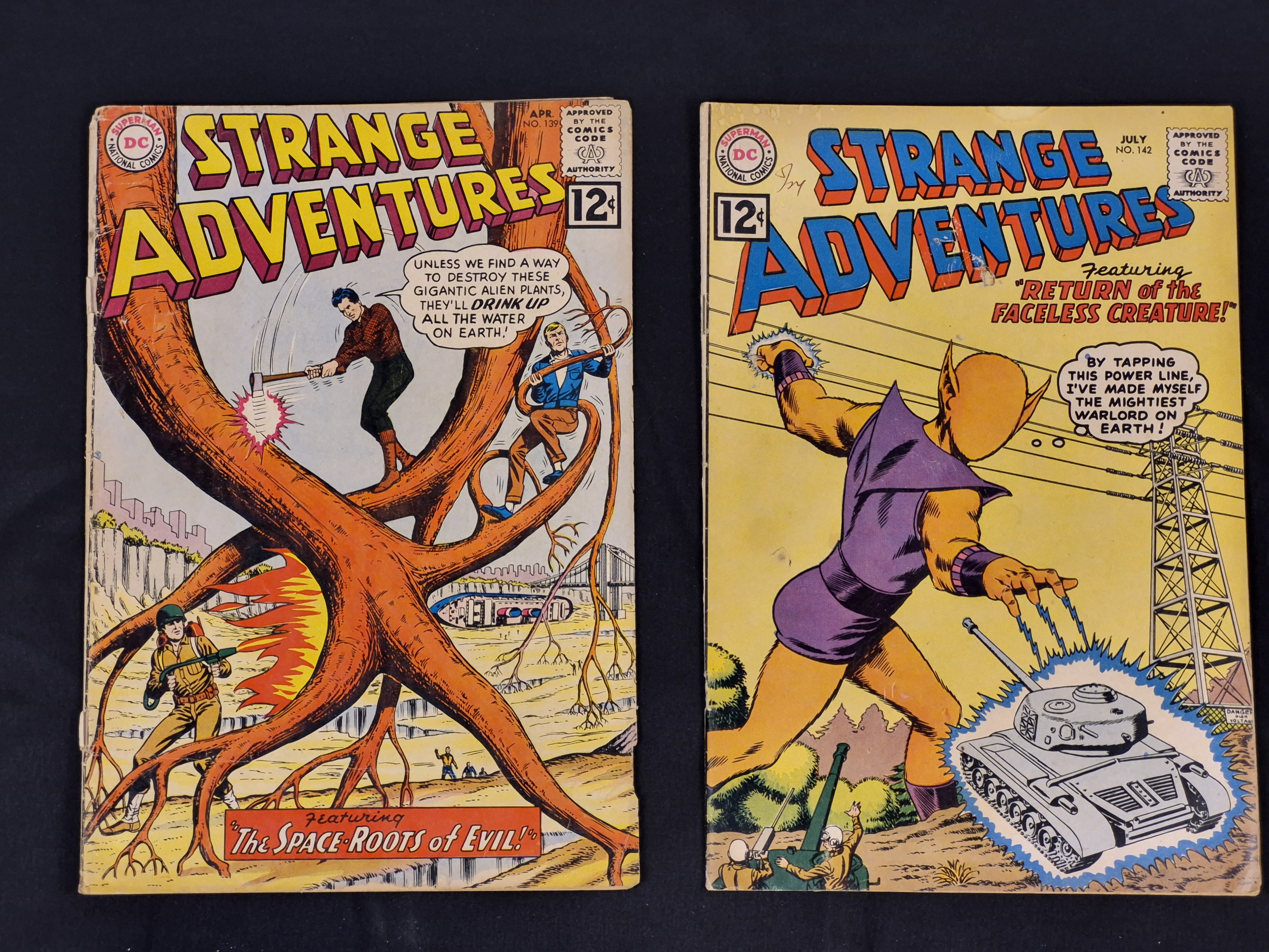 Two issues of DC Comics Strange Adventures Vol. 1: #139 and #142 (both 1962). Silver Age sci-fi anthology pair showcasing DC’s early-1960s storytelling. Combined CBR estimates: $345.