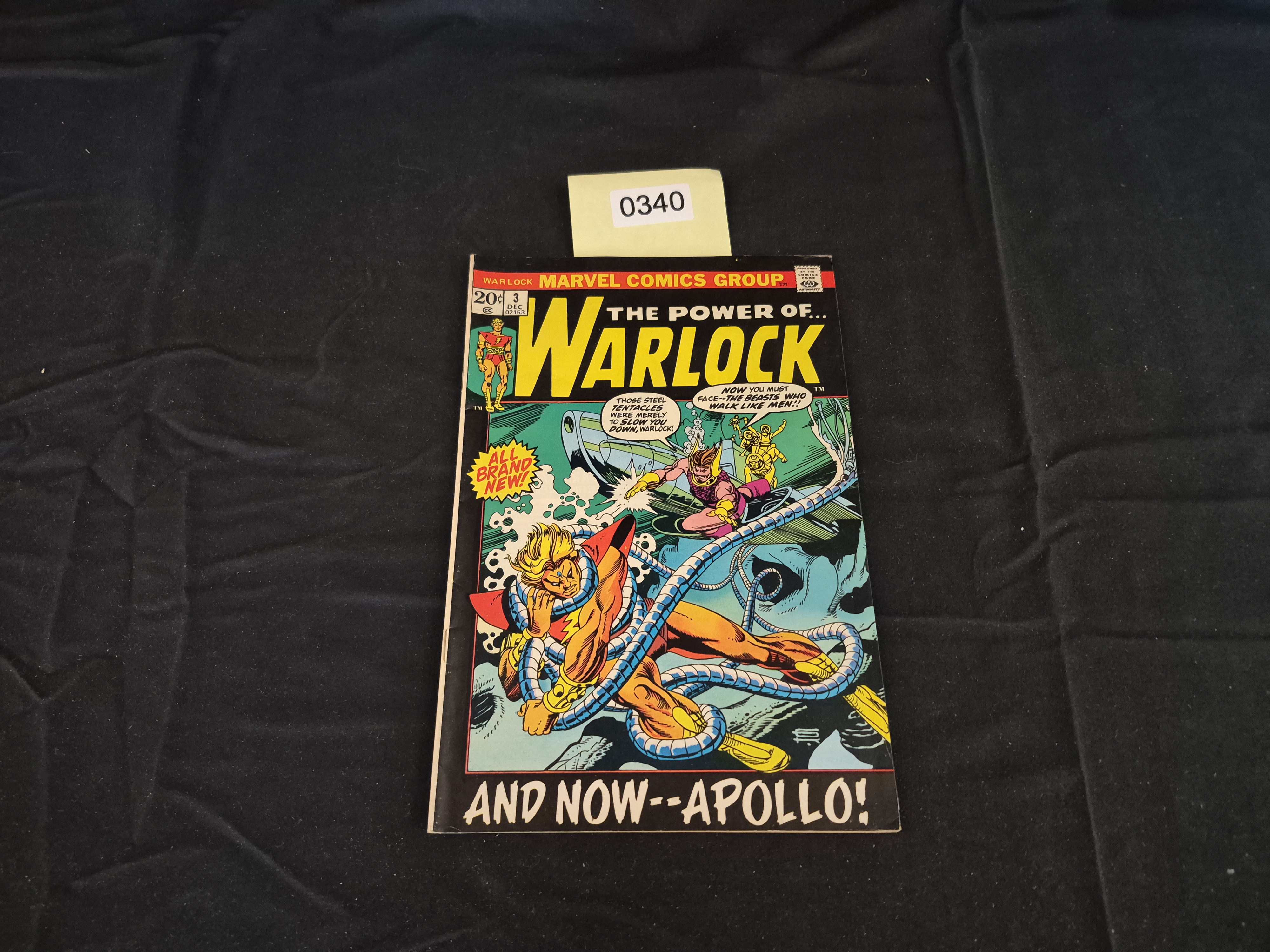 BID PER WHAT YOU SEE IN THE PHOTO, NOT THE AI GENERATED TITLES AND DESCRIPTIONS! A single Bronze Age comic book published by the Marvel Comics Group, identified through market consensus as Warlock (Volume 1) Issue 3. The comic is dated December and priced at 20¢, bearing the 02153 code stamp and the Comics Code Authority seal. The cover features the titular character in combat, illustrated by Gil Kane, with text boxes advertising “ALL BRAND NEW!” and “AND NOW–APOLLO!”. This issue is a key Bronze Age title from the 1972 run.
