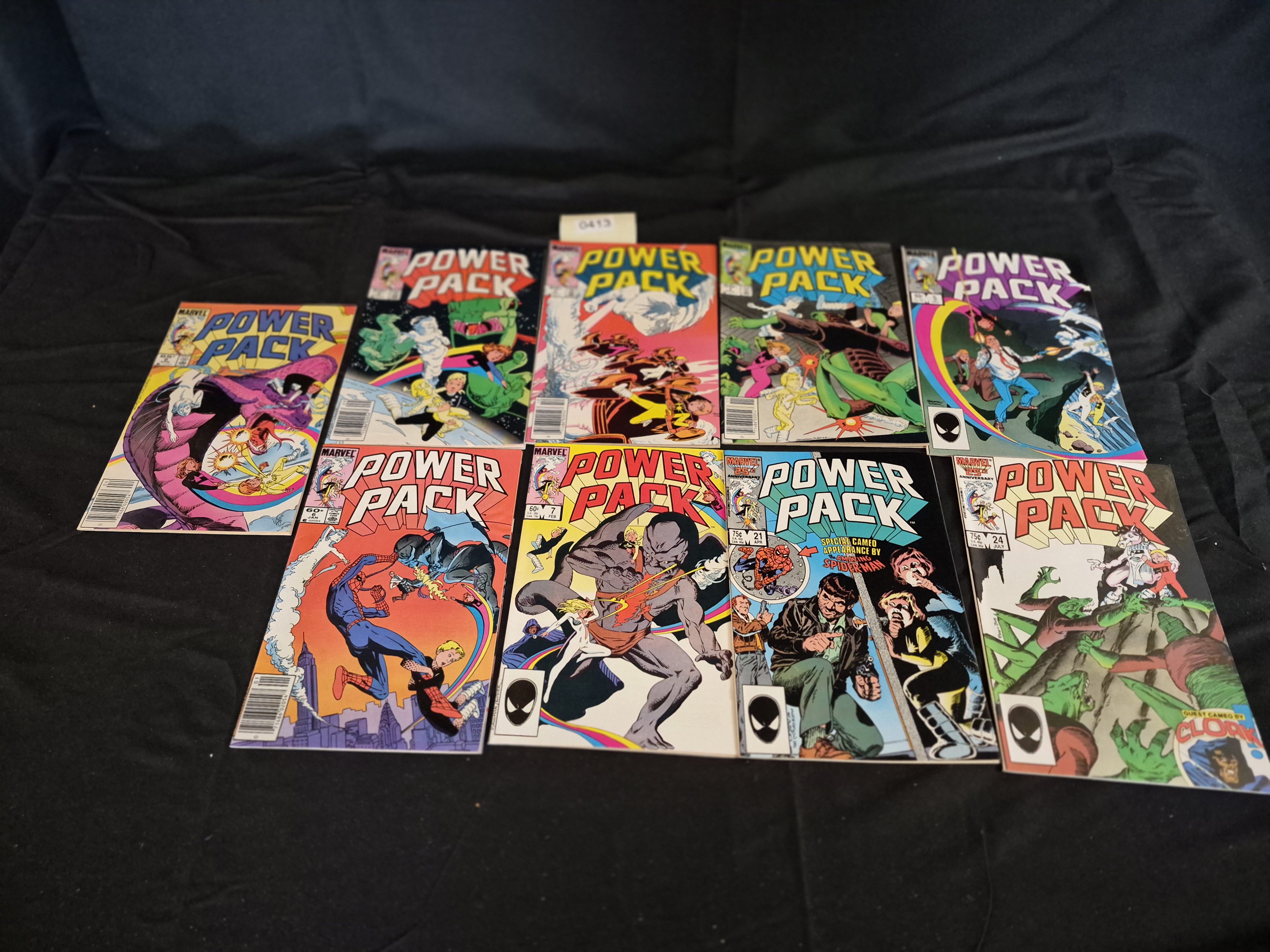 BID PER WHAT YOU SEE IN THE PHOTO, NOT THE AI GENERATED TITLES AND DESCRIPTIONS! A collection of ten (10) vintage comic books from the Marvel Comics series Power Pack (1984-1991 run), dating to the Copper Age era. The collection includes various issues featuring colorful covers typical of the period. Specific visible issues include #6, #7, #21, #24, #26, #28, and #30. Issue #7 is noted in market research for featuring Dragon Man. Other issues feature guest appearances by major Marvel characters, including Spider-Man (notably on #21, which carries the MARVEL 25TH ANNIVERSARY logo and notes a Special Cameo Appearance) and Cloak. The comics are constructed of standard paper stock.