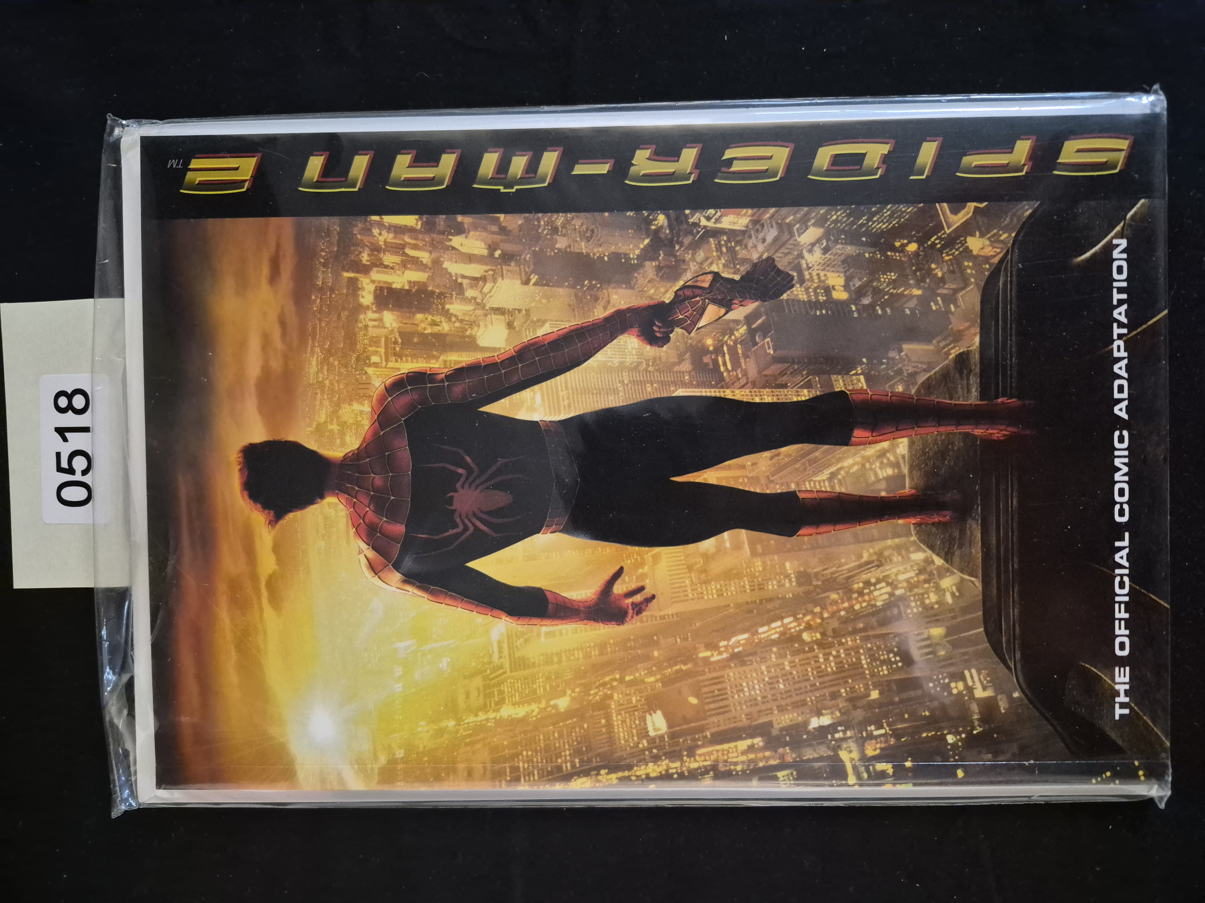 BID PER WHAT YOU SEE IN THE PHOTO, NOT THE AI GENERATED TITLES AND DESCRIPTIONS! A single Modern Age comic book, identified as the official comic adaptation for the 2004 film Spider-Man 2. The periodical is sealed within a protective plastic sleeve and features a cover image of the superhero Spider-Man, viewed from the back, standing on a ledge overlooking a metropolitan skyline during a vibrant sunset or sunrise, while holding his mask in his hand. The title SPIDER-MAN 2 is printed vertically along the right edge. The comic is currently enclosed with a backing board.