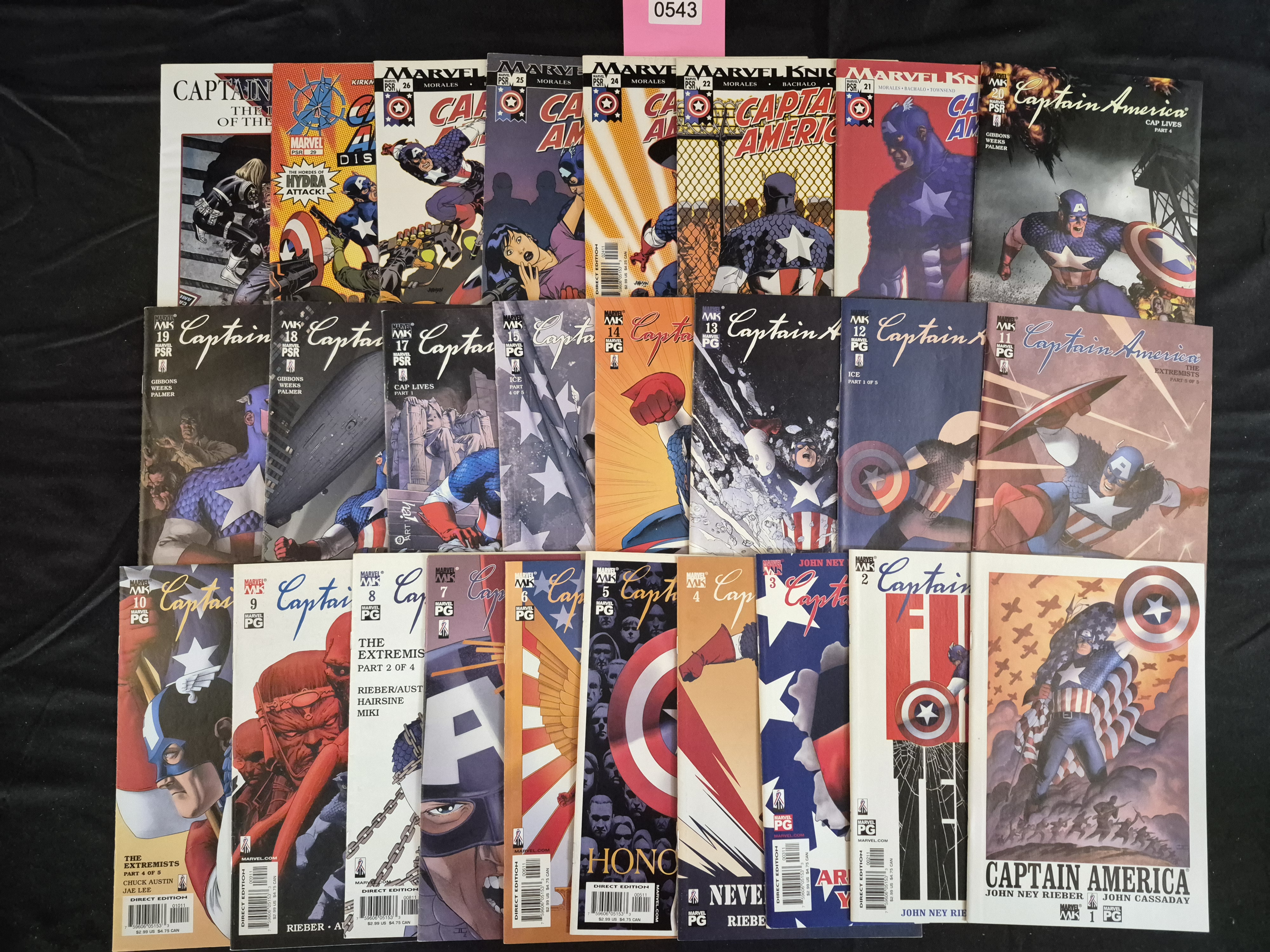 BID PER WHAT YOU SEE IN THE PHOTO, NOT THE AI GENERATED TITLES AND DESCRIPTIONS! Collection of 30 standard paper comic books published by Marvel Comics under the Marvel Knights (MK) imprint. The collection consists almost entirely of issues from the Captain America (Volume 4, 2002 series), featuring a near-complete run with visible issue numbers ranging from #1 through #29. Specific visible storylines include “CAP LIVES,” “ICE,” and “THE EXTREMISTS.” Visible creators include John Ney Rieber, John Cassaday, Chuck Austin, and Morales. Covers are full-color, gloss paper featuring dynamic illustrations of Captain America and supporting characters. Most issues display a ‘PG’ or ‘PSR’ (Parental Supervision Required) rating. All visible copies are Direct Edition, featuring barcodes listing a US cover price of $2.99.