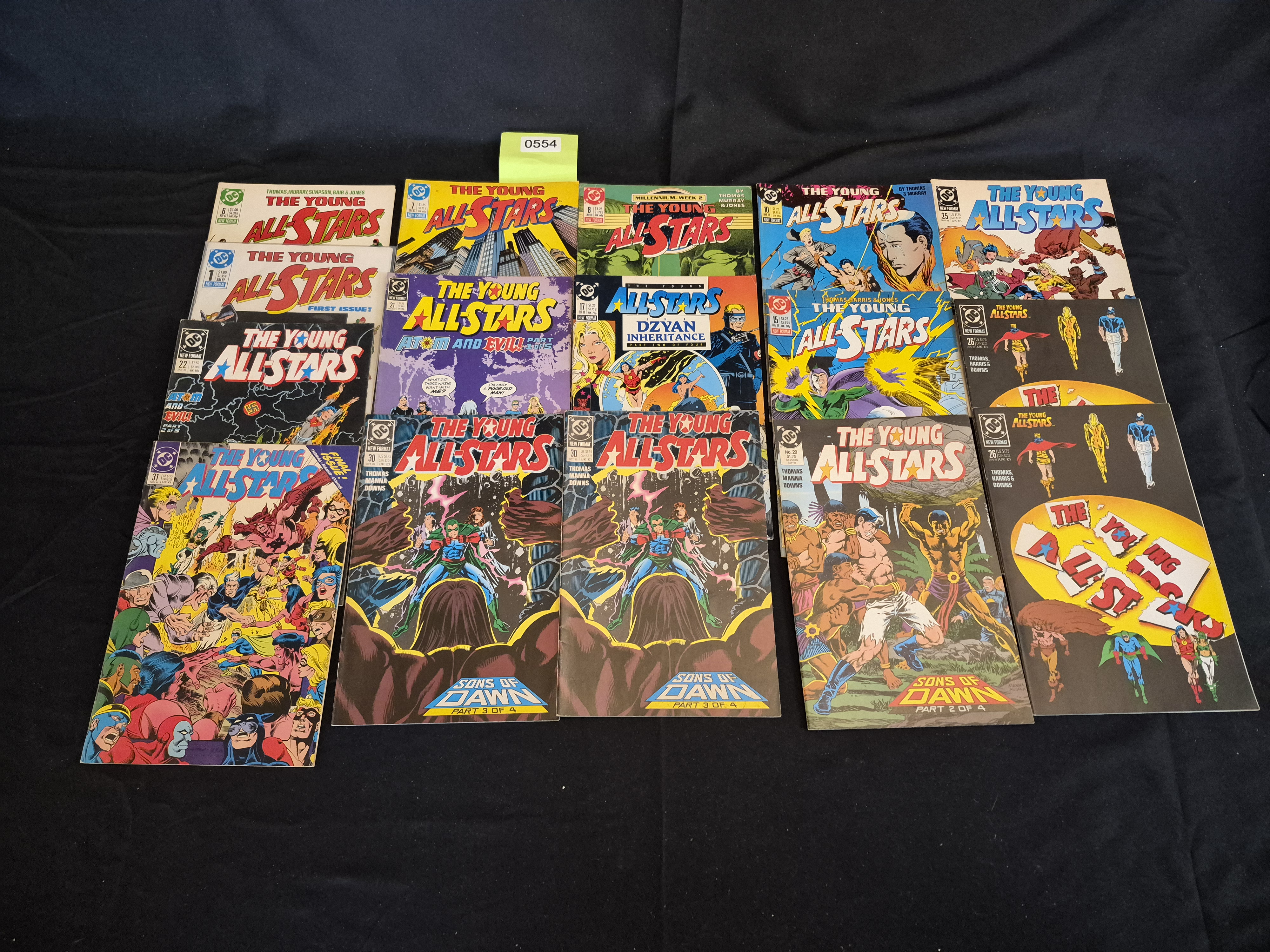 BID PER WHAT YOU SEE IN THE PHOTO, NOT THE AI GENERATED TITLES AND DESCRIPTIONS! A collection of 22 DC Comics periodicals from the series The Young All-Stars (1987-1989). The lot focuses on the main run, including key issues such as Issue #1 (marked First Issue!) and numerous subsequent issues, with visible issues spanning up to Issue #32 (the apparent final issue of the run). Visible story arcs include Sons of Dawn and Atom and Evil. The comics are published under the DC New Format banner, featuring glossy paper covers and bright, varied comic book artwork. Cover prices range from $1.00 to $1.75 (US/Canada).