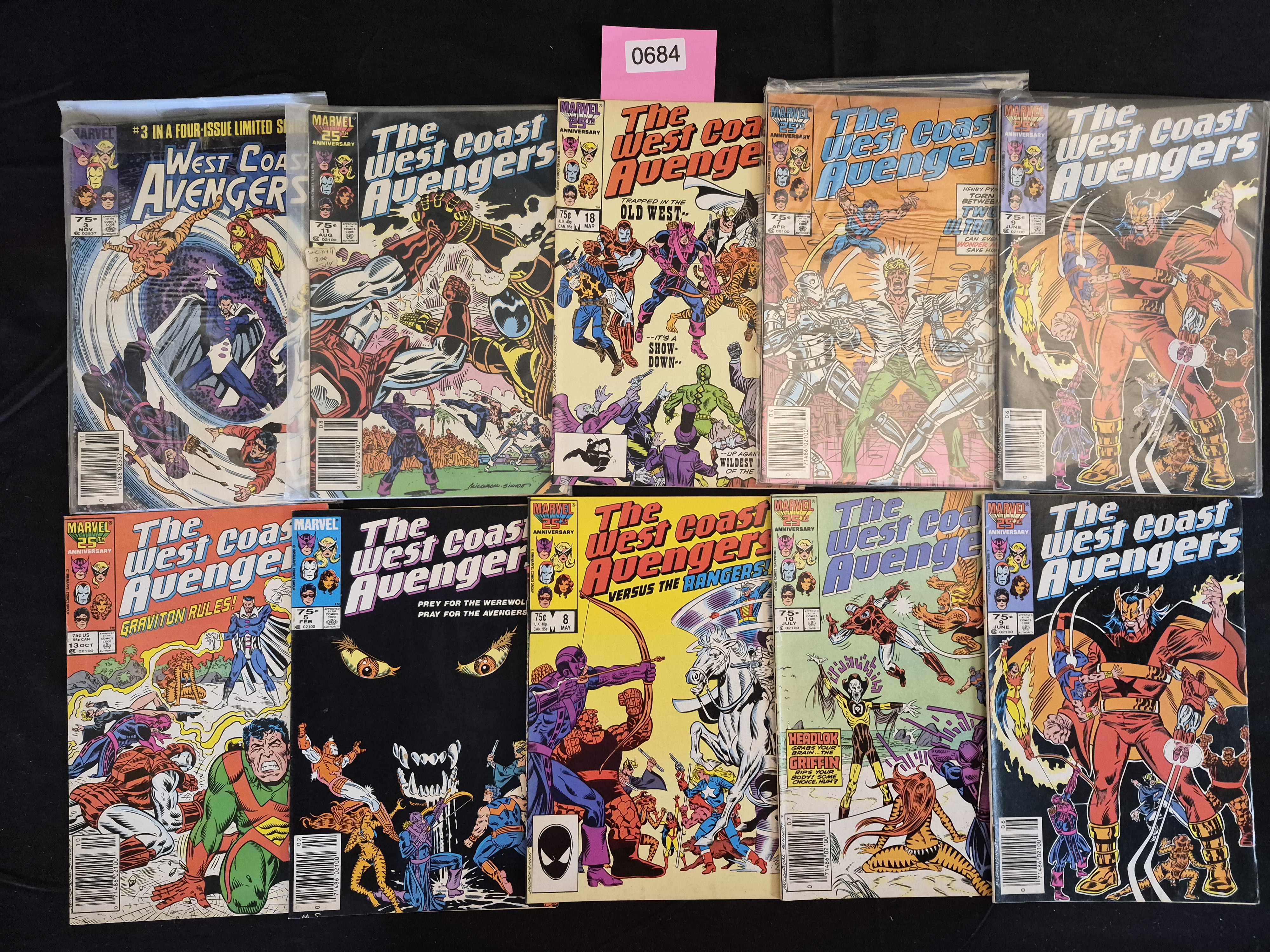 BID PER WHAT YOU SEE IN THE PHOTO, NOT THE AI GENERATED TITLES AND DESCRIPTIONS! A collection of 10 American comic books published by Marvel Comics, featuring the West Coast Avengers team. This lot includes one issue from the initial four-issue limited series and a sequential run of the first nine issues of the subsequent ongoing series, dating primarily from 1985-1986 (Copper Age).