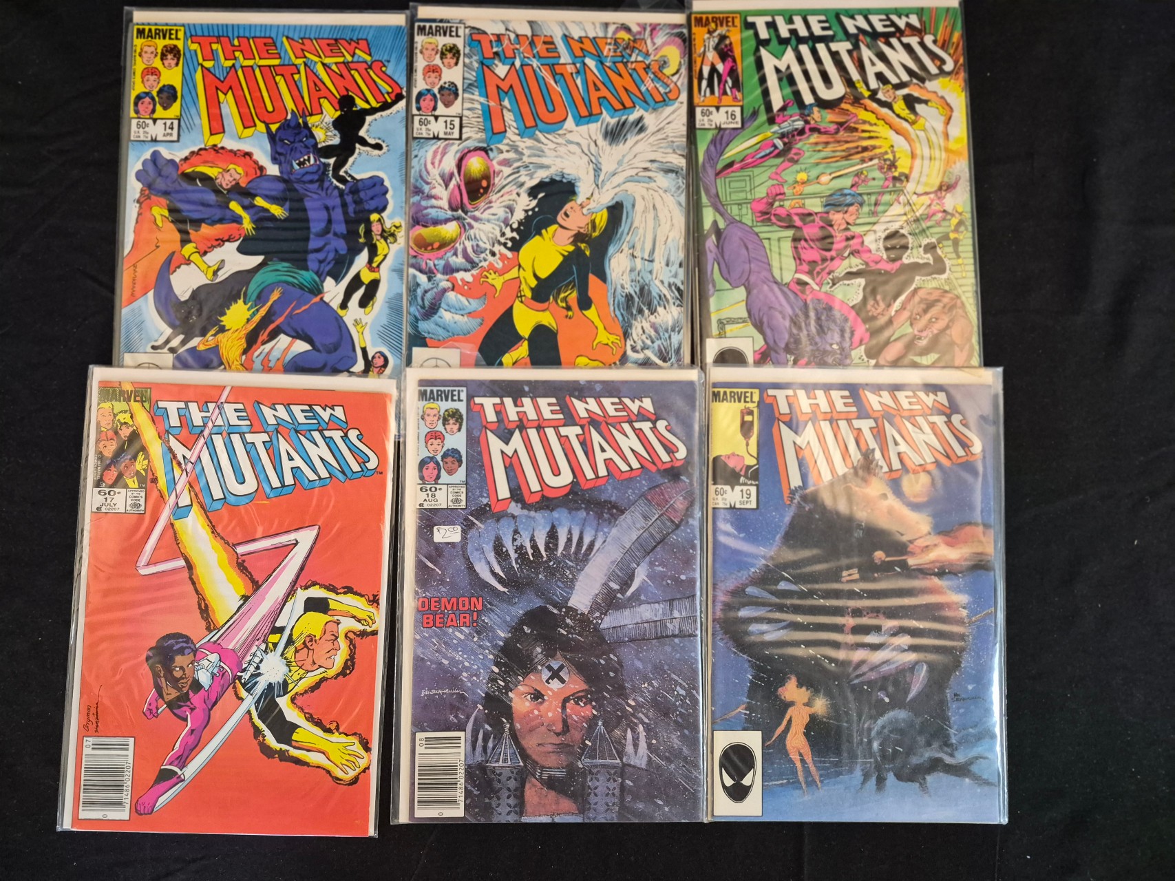 BID PER WHAT YOU SEE IN THE PHOTO, NOT THE AI GENERATED TITLES AND DESCRIPTIONS! This group of Marvel Comics Group publications features sequential issues of The New Mutants dating from April to September 1984. The collection includes the issue marking the first appearance of Illyana Rasputin as Magik and the start of the Demon Bear storyline with art by Bill Sienkiewicz. The issues also include the first appearance of James Proudstar. Each staple-bound comic is printed on paper and displays the standard trade dress of the period, including the series title, issue number, month of publication, original 60-cent price point, and the Comics Code Authority seal. The items are housed in individual protective plastic sleeves with cardboard backing boards.