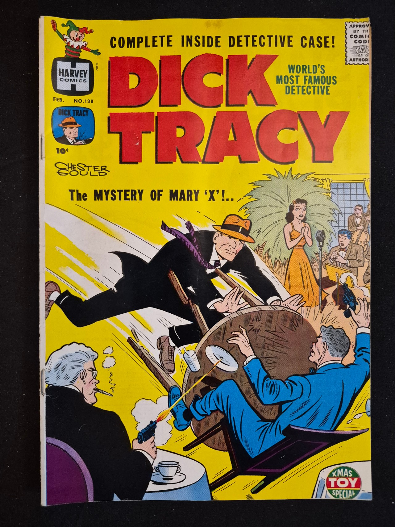 BID PER WHAT YOU SEE IN THE PHOTO, NOT THE AI GENERATED TITLES AND DESCRIPTIONS! This mid-century comic book, Dick Tracy issue No. 138, was published by Harvey Comics in February 1960. The cover features art by Chester Gould illustrating a scene titled The Mystery of Mary X!.. against a yellow background with red typography. The front cover includes the Harvey Comics logo, a 10-cent original cover price, a Xmas Toy Special emblem, and the Approved by the Comics Code Authority seal. The publication is part of the Dick Tracy Monthly series.