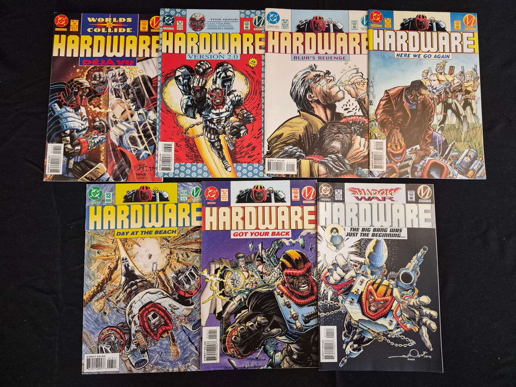 BID PER WHAT YOU SEE IN THE PHOTO, NOT THE AI GENERATED TITLES AND DESCRIPTIONS! A collection of Hardware comic books published by DC Comics in collaboration with Milestone Media. This group includes issues ranging from #11 through #17, dating from January to July 1994. The series features storylines such as Shadow War and the Worlds Collide crossover. These standard-format, staple-bound comics feature multi-colored cover art with titles including Version 2.0, Got Your Back, and Deja Vu. Each issue displays original pricing, issue numbers, and publisher logos for both DC and Milestone on the front covers.