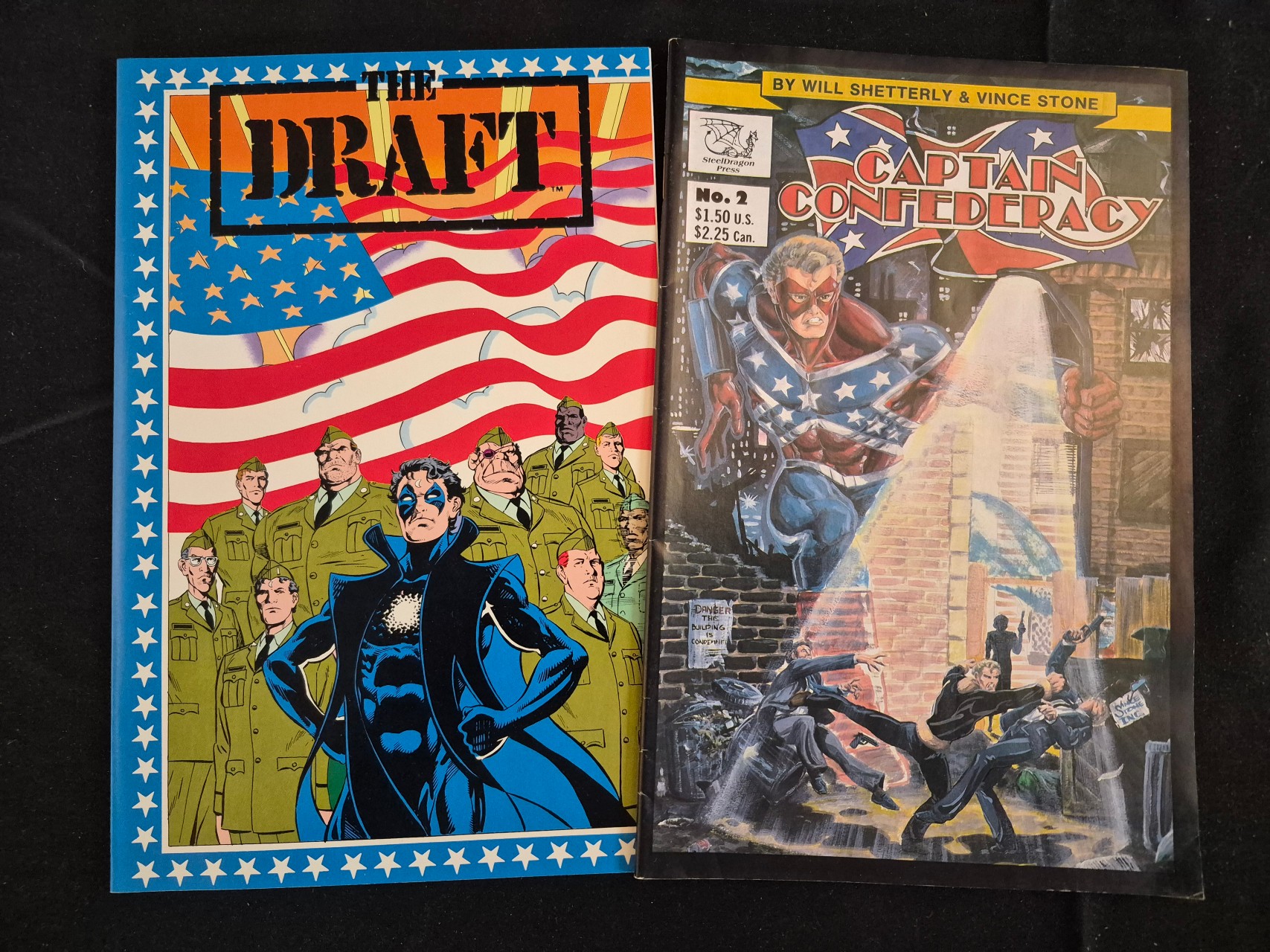 Two Comic Books Including The Draft No. 1 and Captain Confederacy No. 2