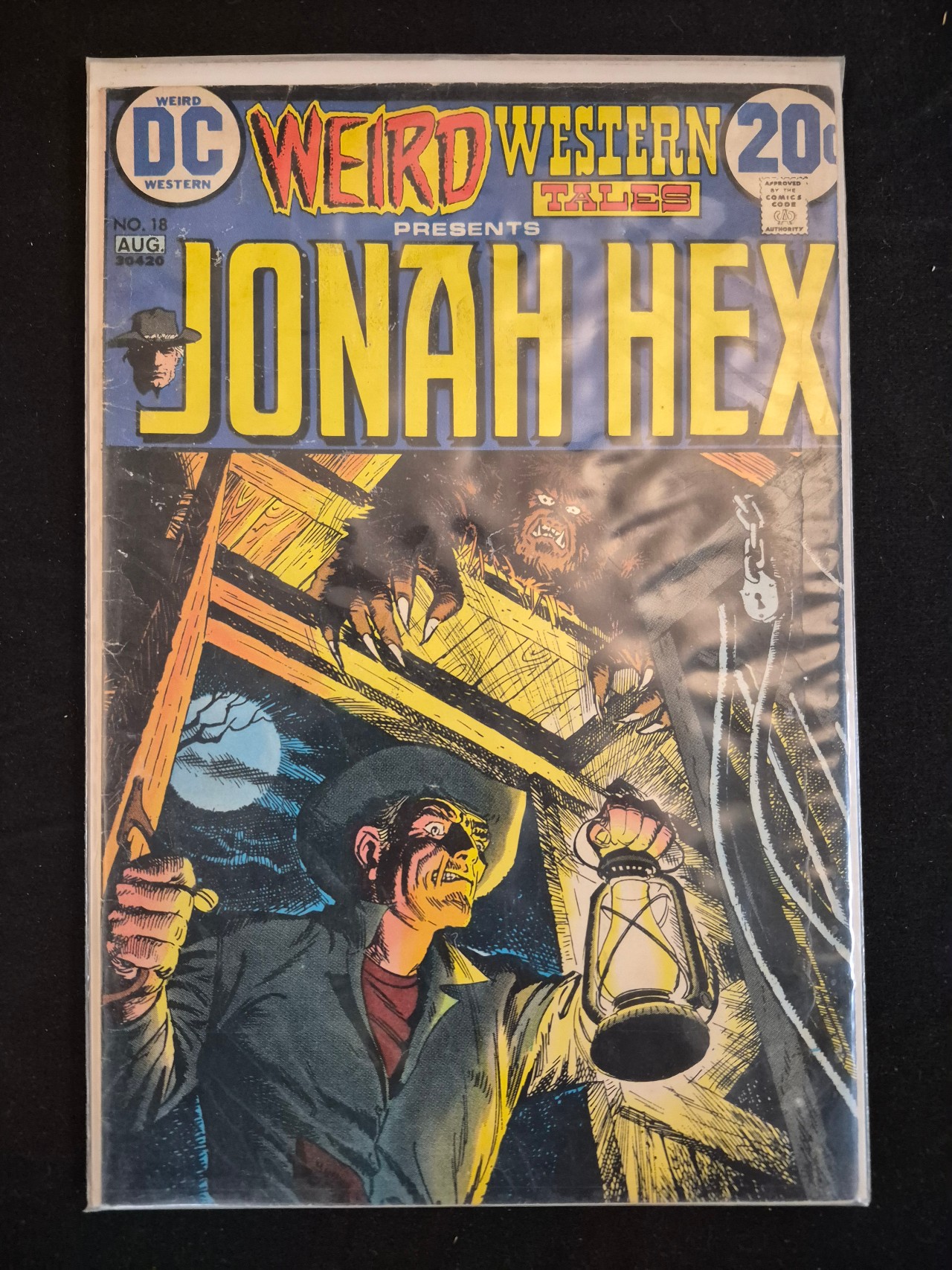 BID PER WHAT YOU SEE IN THE PHOTO, NOT THE AI GENERATED TITLES AND DESCRIPTIONS! This Bronze Age comic book, Weird Western Tales issue No. 18, was published by DC Comics in August 1973. The cover features the character Jonah Hex as the primary subject, with the name Jonah Hex printed in large yellow block lettering. The cover illustration depicts Jonah Hex holding a lantern while a creature lurks above. The upper left corner displays the DC logo, issue number 18, and the month of August. The upper right corner shows the 20-cent price point and the Comics Code Authority seal. The comic is housed in a protective plastic sleeve.
