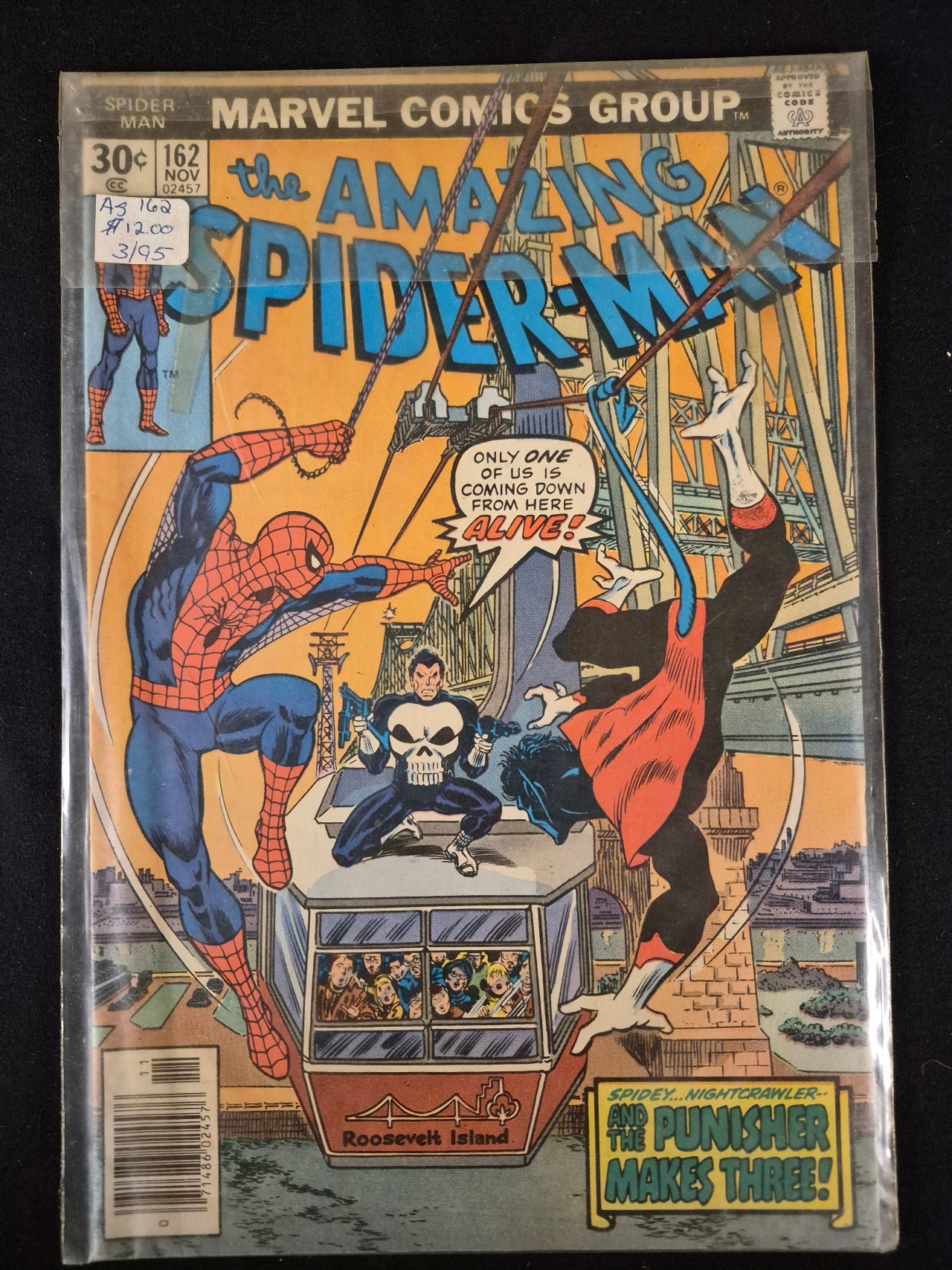 BID PER WHAT YOU SEE IN THE PHOTO, NOT THE AI GENERATED TITLES AND DESCRIPTIONS! Marvel Comics The Amazing Spider-Man issue number 162, published in November 1976. This Bronze Age comic book is notable for the first appearance of the character Jigsaw. The cover artwork, by Gil Kane and John Romita, depicts Spider-Man, Nightcrawler, and the Punisher engaged in a confrontation atop a Roosevelt Island tram car. The front cover features a 30-cent cover price, a standard barcode, and the Comics Code Authority seal in the upper right corner. The issue is part of the first series of The Amazing Spider-Man titles originally launched in 1963.