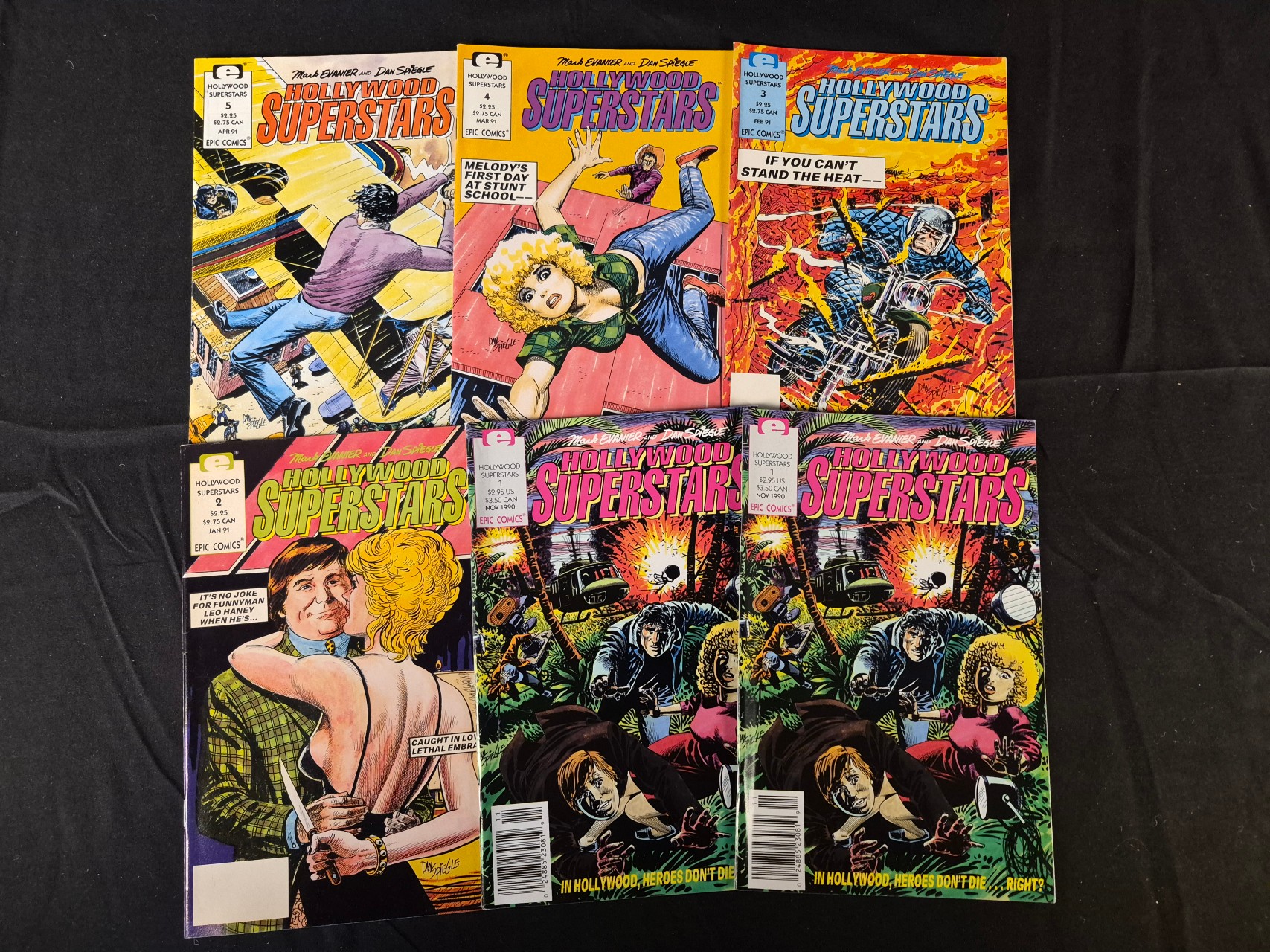 BID PER WHAT YOU SEE IN THE PHOTO, NOT THE AI GENERATED TITLES AND DESCRIPTIONS! A collection of Hollywood Superstars comic books published by Epic Comics, an imprint of Marvel, dating from late 1990 to early 1991. Created by Mark Evanier and Dan Spiegle, these Modern Age comics feature full-color cover illustrations and are printed on standard comic paper with staple-bound spines. The group includes various issues from the series with publication dates ranging from November 1990 to April 1991. Visible text on the covers includes the series title, creator credits, issue numbers, and original retail price markings for both the United States and Canada.