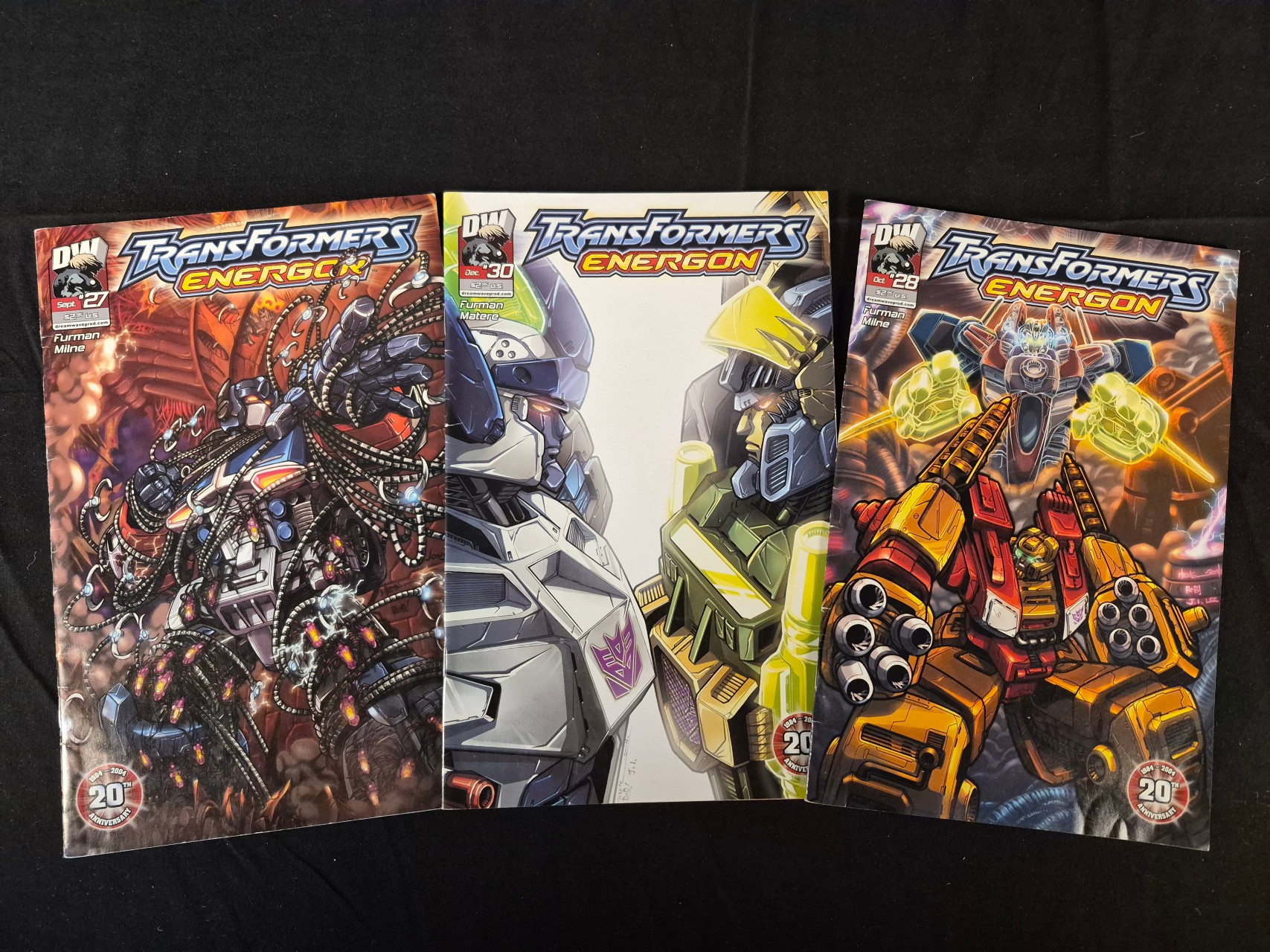 A Trio of The Transformers Energon Comic Books Issues 27 28 and 30 Published by Dreamwave Productions