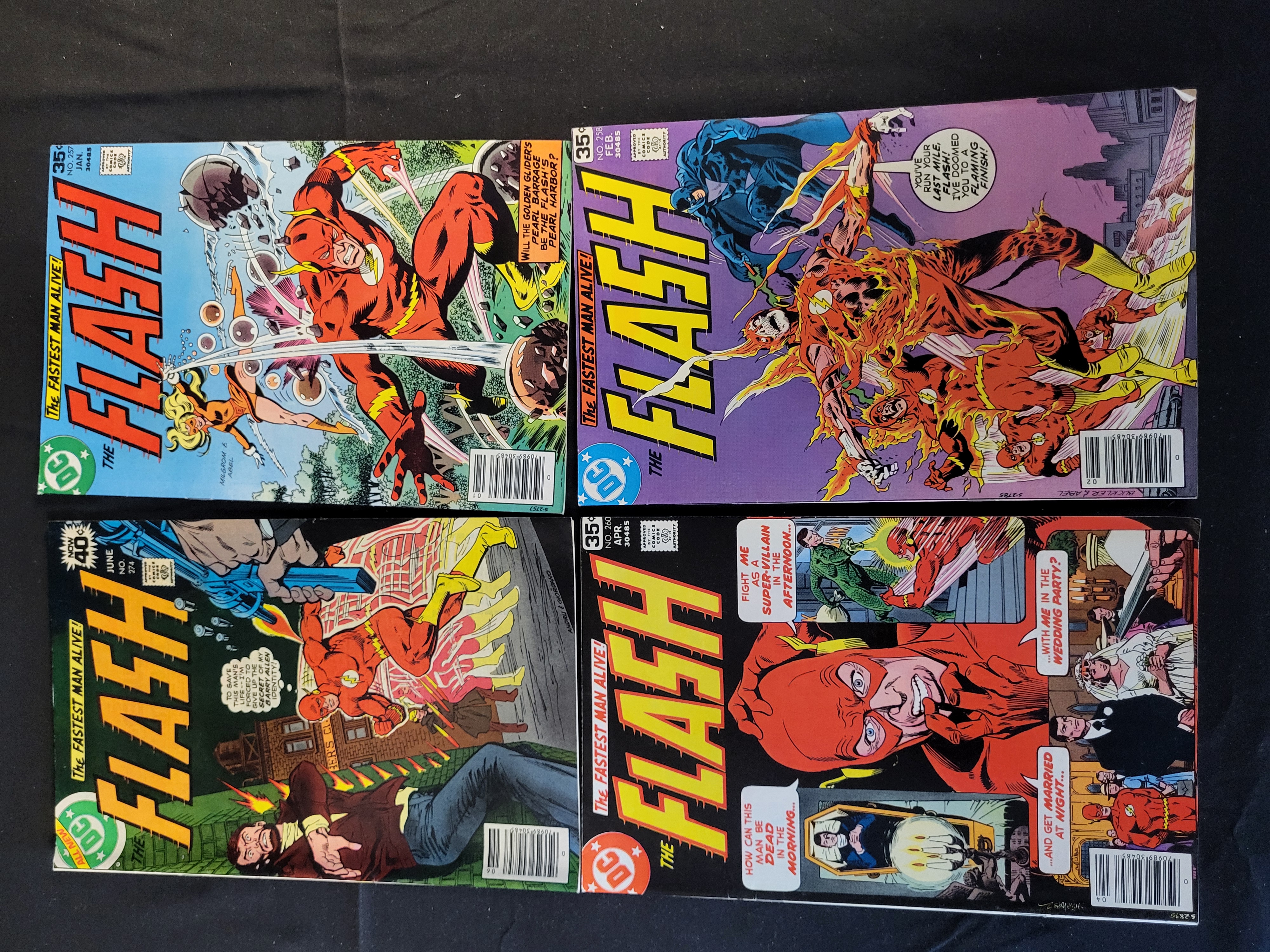 BID PER WHAT YOU SEE IN THE PHOTO, NOT THE AI GENERATED TITLES AND DESCRIPTIONS! A collection of DC Comics The Flash comic books from the Bronze Age period. This group includes issue numbers 257 (January 1978), 258 (February 1978), 260 (April 1978), and 274 (June 1979). Each issue features the DC logo and the series tagline The Fastest Man Alive on the front cover. The covers display original retail prices of 35 cents and 40 cents. The issues contain dynamic cover art depicting the titular character in various action sequences.