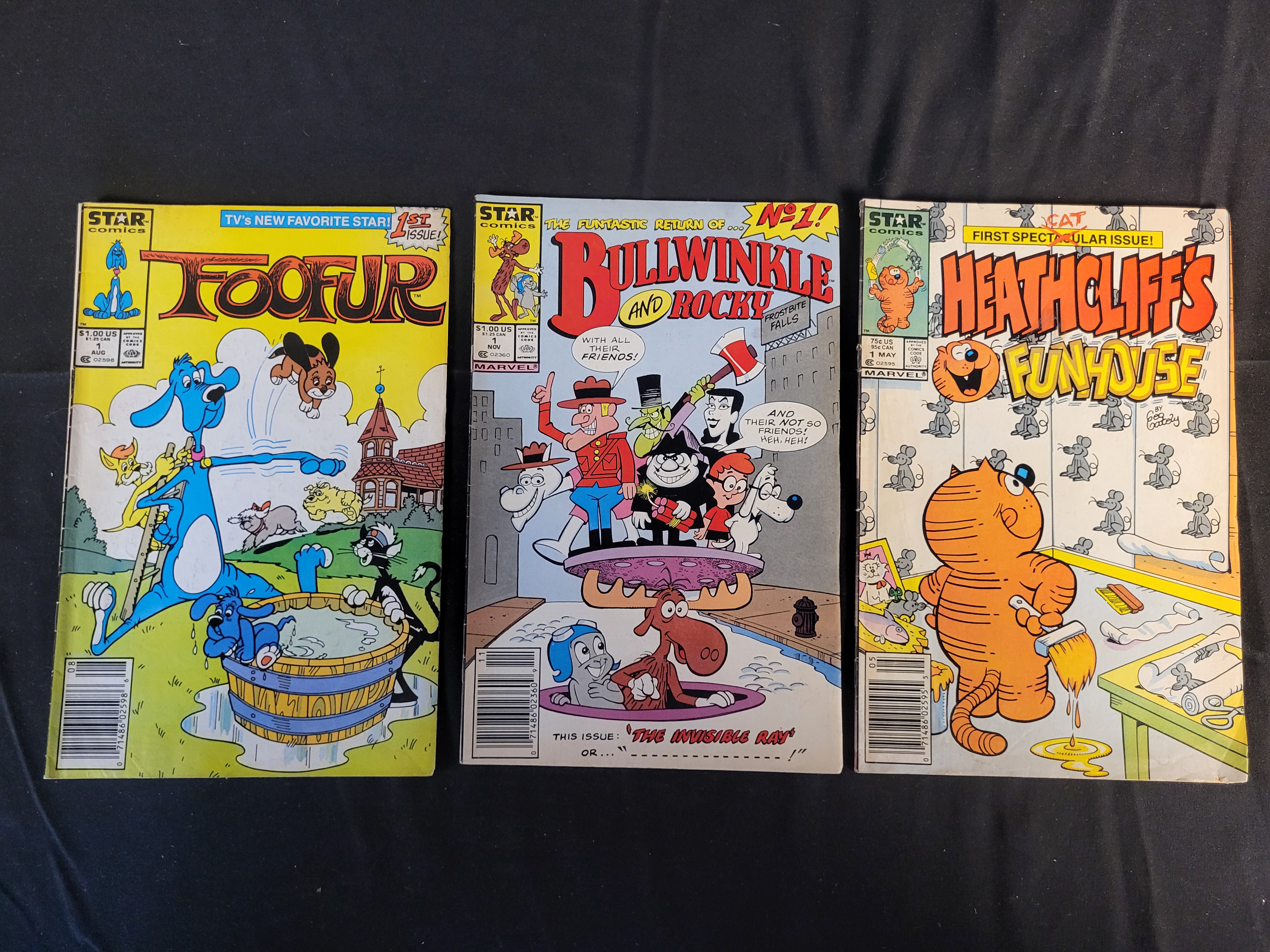 A Trio of Marvel Star Comics Premiere Issues Featuring Foofur, Bullwinkle and Rocky, and Heathcliff's Funhouse