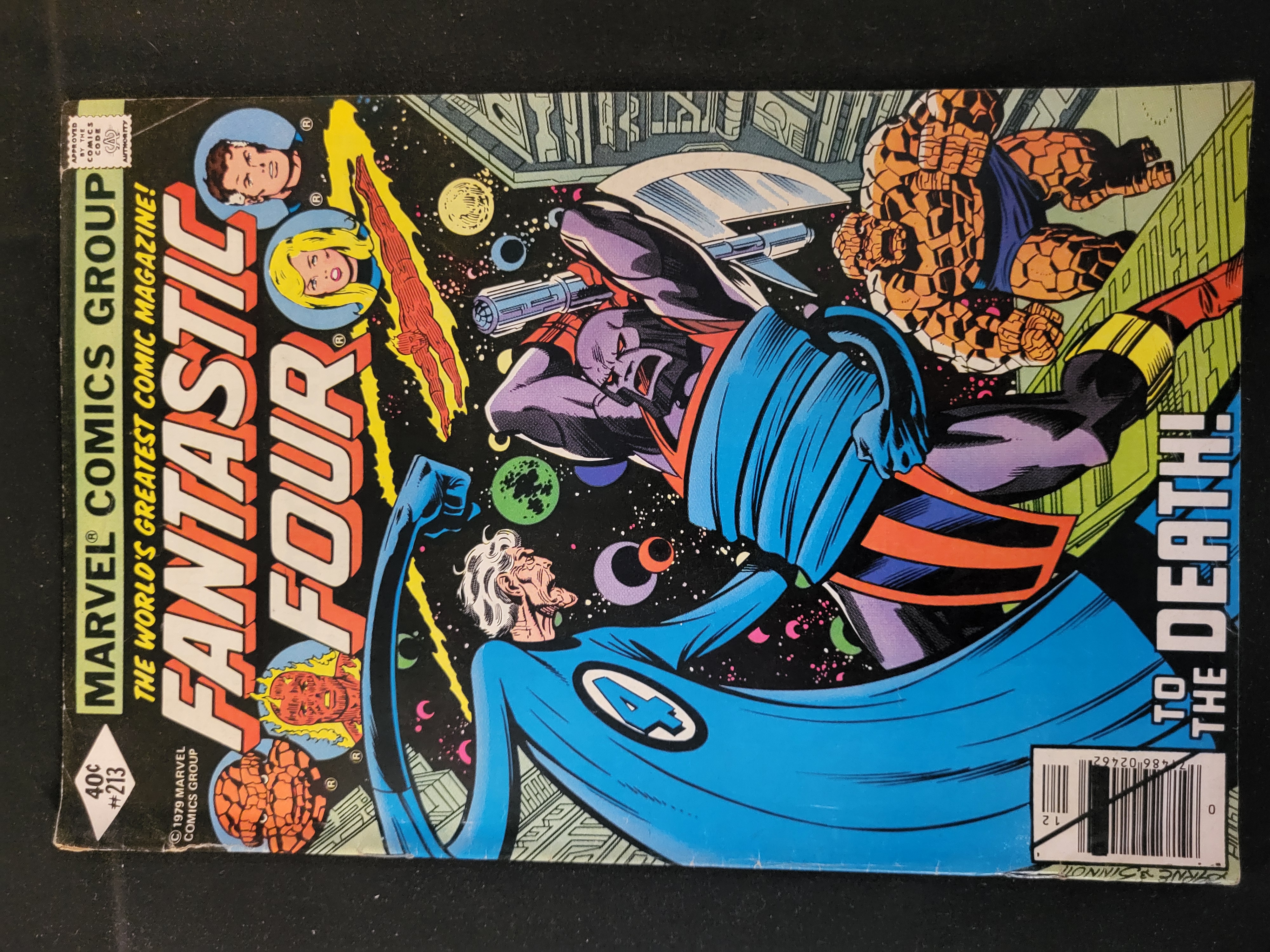 BID PER WHAT YOU SEE IN THE PHOTO, NOT THE AI GENERATED TITLES AND DESCRIPTIONS! A 1979 Marvel Comics Group publication of Fantastic Four issue number 213. The front cover features art by John Byrne and Joe Sinnott, illustrating characters Mr. Fantastic and The Thing in a cosmic battle with the text TO THE DEATH!. The cover displays the series title Fantastic Four: The World’s Greatest Comic Magazine!, the Comics Code Authority seal, and a 40-cent price point. The issue is dated December 1979.