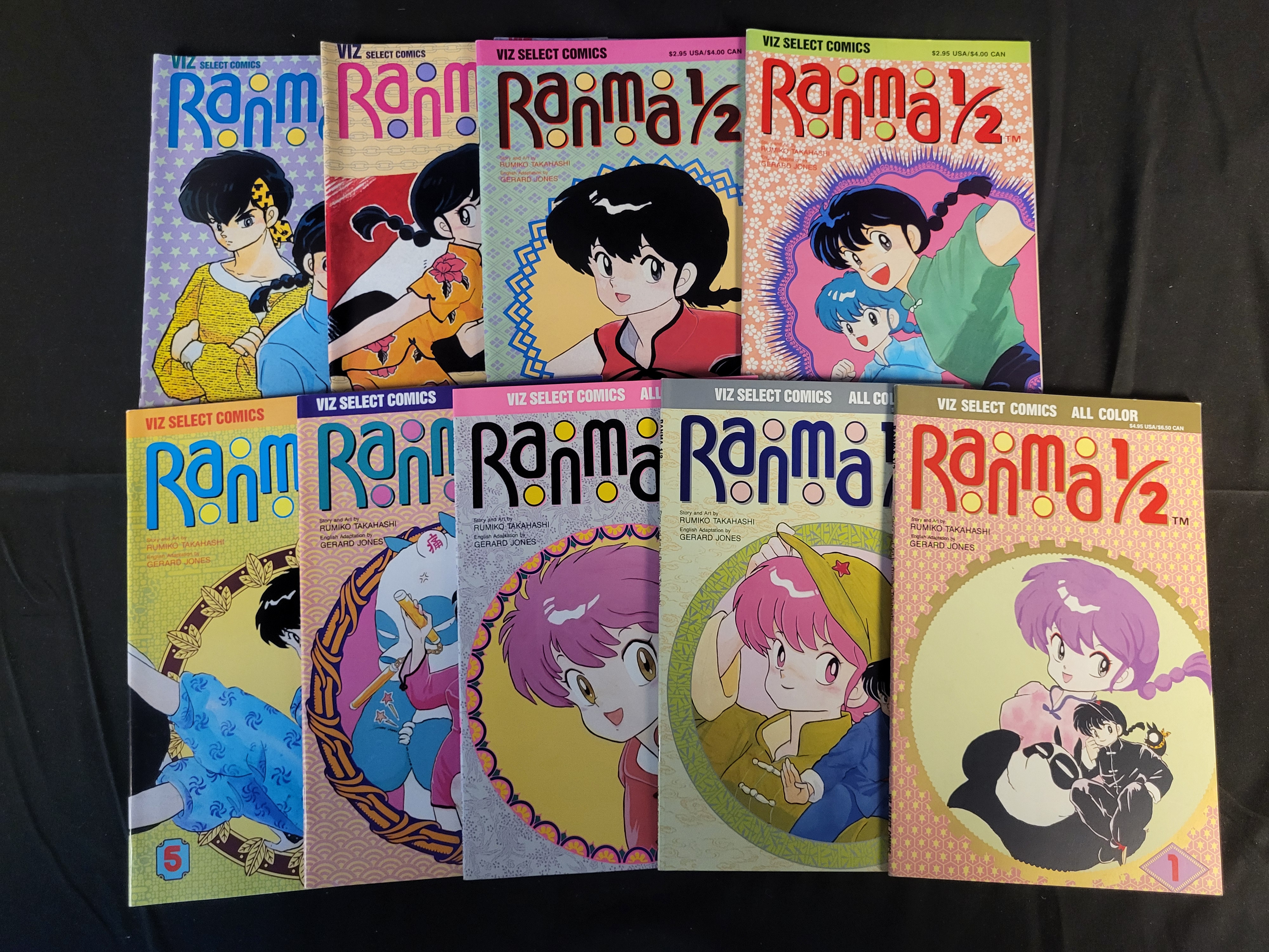 BID PER WHAT YOU SEE IN THE PHOTO, NOT THE AI GENERATED TITLES AND DESCRIPTIONS! A collection of Ranma 1/2 manga comic books published by Viz Select Comics. This group features the story and art of Rumiko Takahashi with English adaptations by Gerard Jones. The collection includes several issues, with some identified as All Color editions. The illustrated covers depict various characters from the martial arts comedy series. Visible markings include the Viz Select Comics logo, original retail pricing of 2.95 USD and 4.95 USD, and issue numbers including 1 and 5.