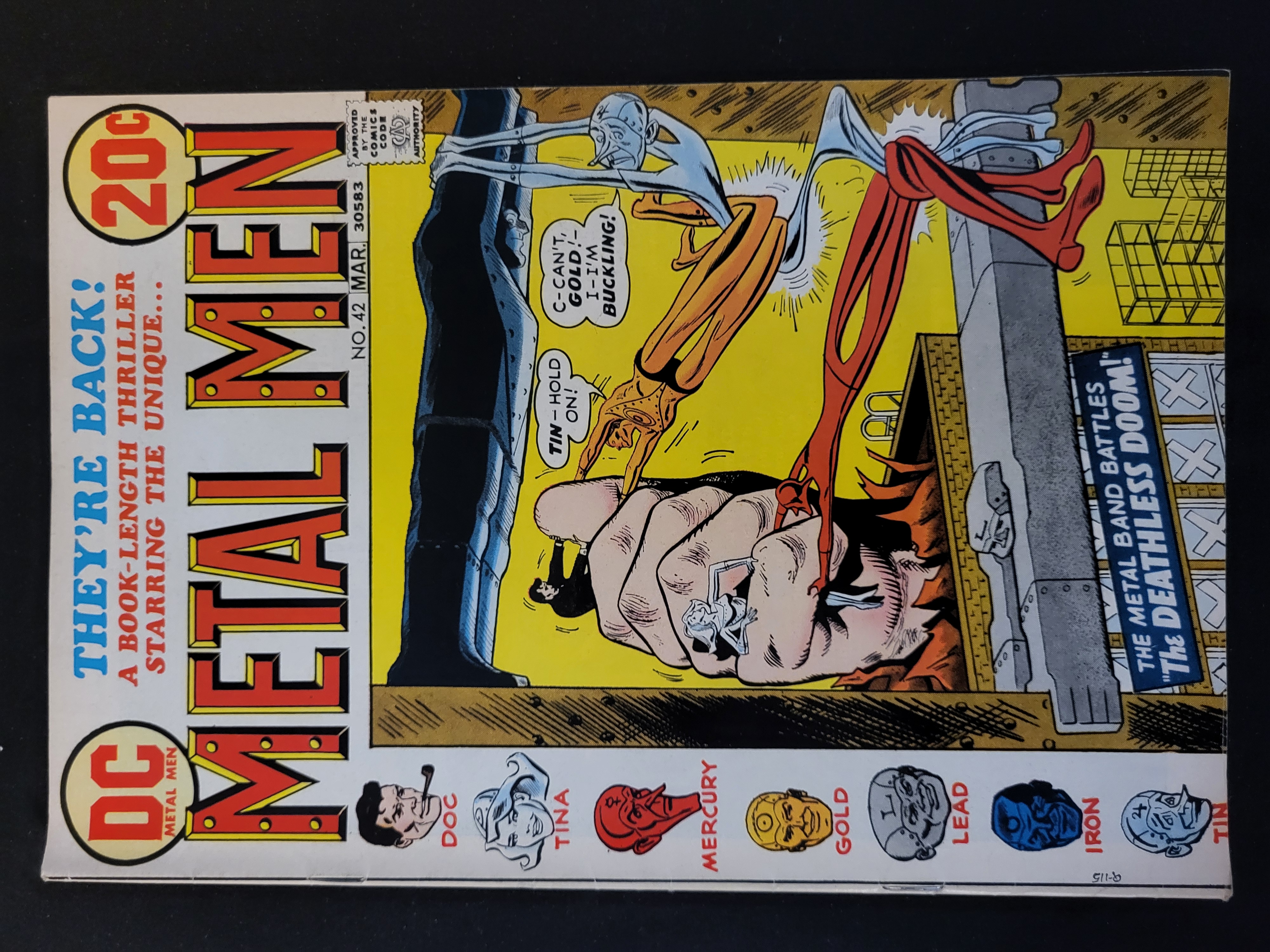 BID PER WHAT YOU SEE IN THE PHOTO, NOT THE AI GENERATED TITLES AND DESCRIPTIONS! This DC Comics publication, Metal Men No. 42, is dated March 1973. The comic book features a 20-cent cover price and the Approved by the Comics Code Authority seal. The front cover art depicts the Metal Men in an action sequence titled The Deathless Doom! with a series of character portraits including Doc, Tina, Mercury, Gold, Lead, Iron, and Tin displayed along the bottom edge.