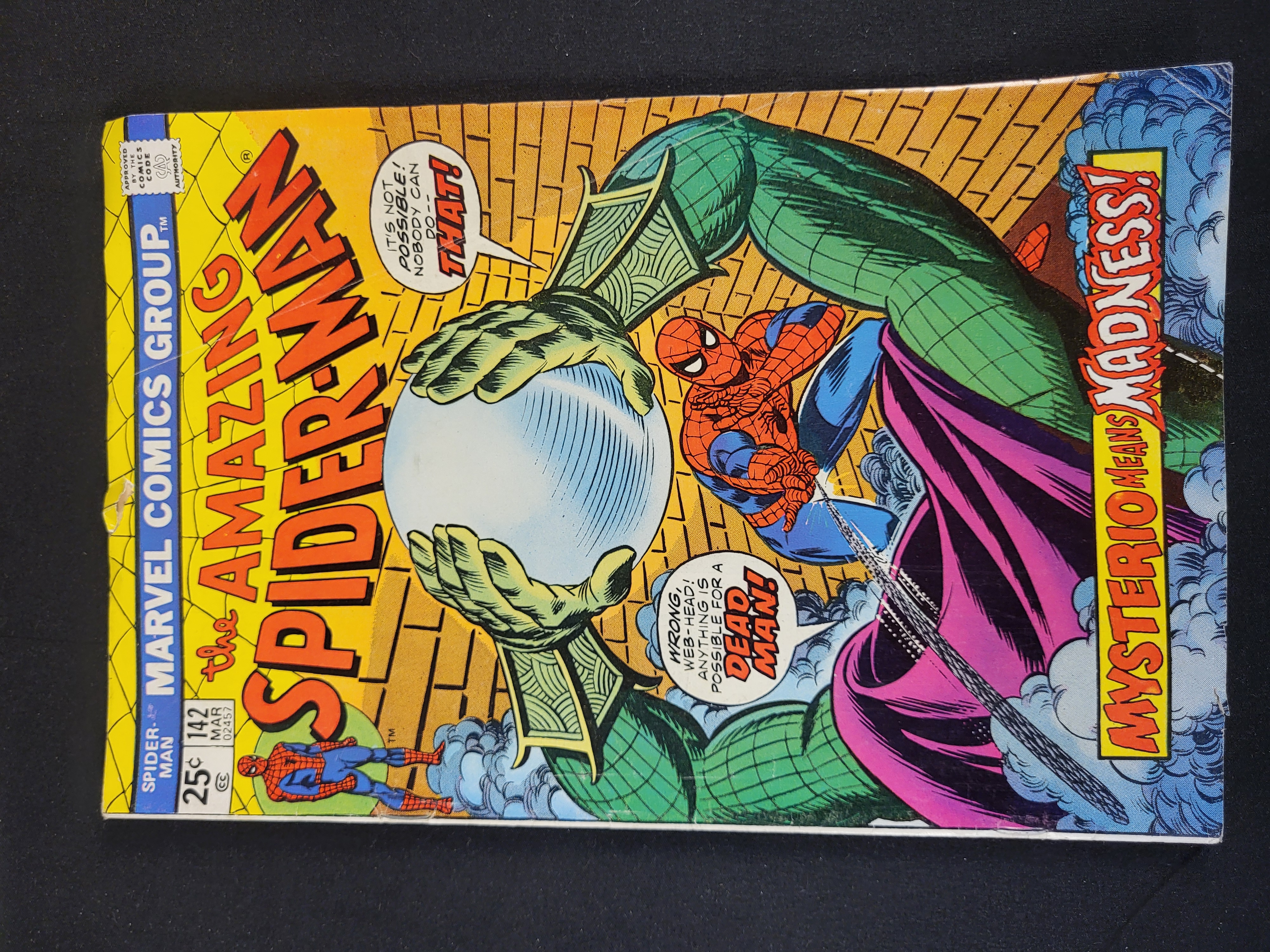 BID PER WHAT YOU SEE IN THE PHOTO, NOT THE AI GENERATED TITLES AND DESCRIPTIONS! The Amazing Spider-Man issue #142, published by Marvel Comics Group with a cover date of March 1975. This Bronze Age comic book features the first appearance of the Gwen Stacy clone and a cover story titled Mysterio Means Madness! The color-illustrated cover includes a 25-cent price point and the Comics Code Authority seal in the upper left corner. The publication is staple-bound with newsprint interior pages and a color-printed paper cover.
