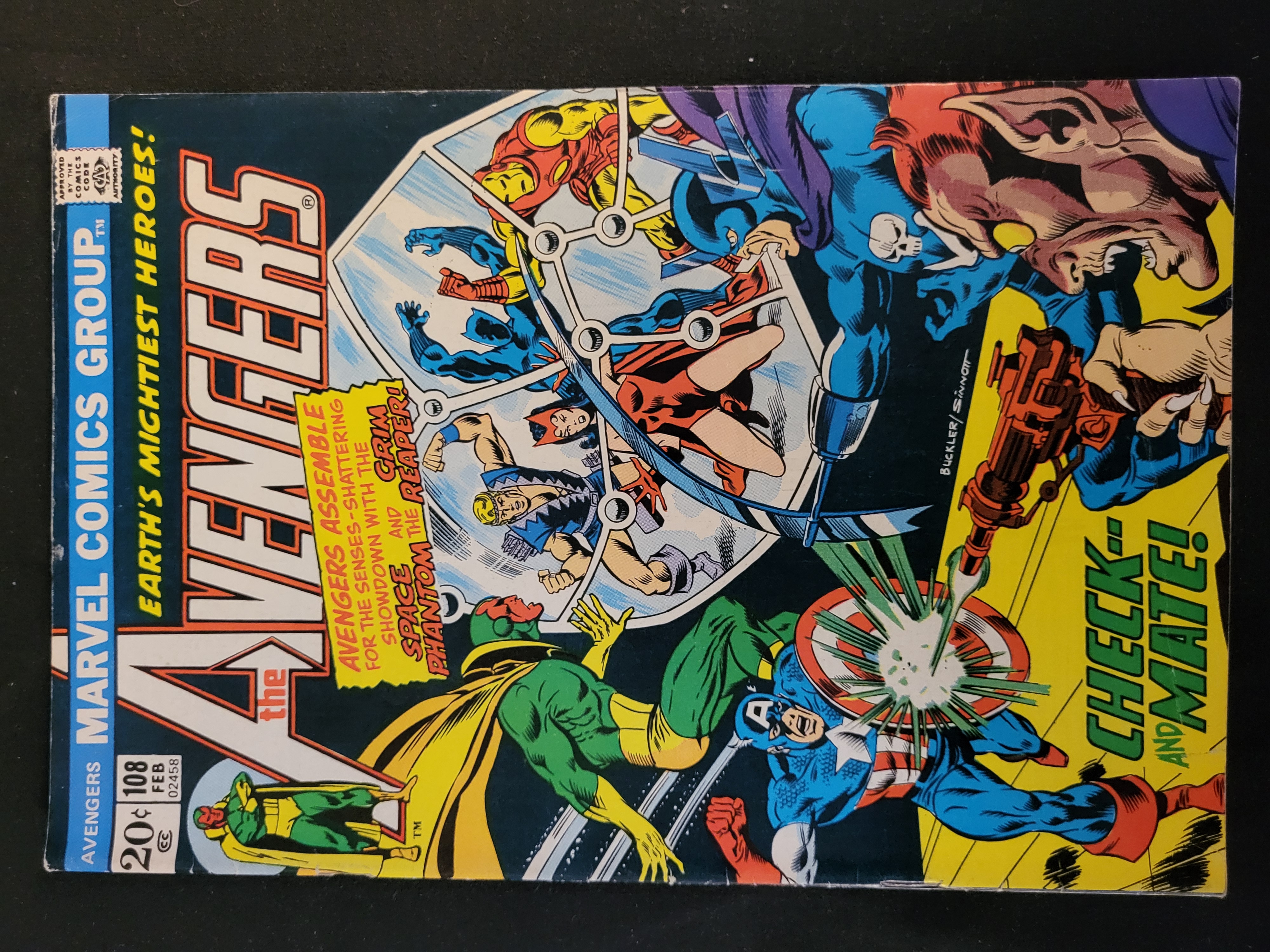 BID PER WHAT YOU SEE IN THE PHOTO, NOT THE AI GENERATED TITLES AND DESCRIPTIONS! A pair of vintage comic books published by Marvel Comics Group in 1973. The first issue is The Avengers #108, dated February, featuring cover art by Buckler and Sinnott. The cover depicts a battle scene with Captain America, Vision, Iron Man, and other heroes under the title Check-and Mate!. The second issue is Beware! #6, dated January, featuring a horror-themed cover titled What Was– The Thing? in the Mirror!. Both publications are priced at 20 cents and display the Comics Code Authority seal on the front covers.