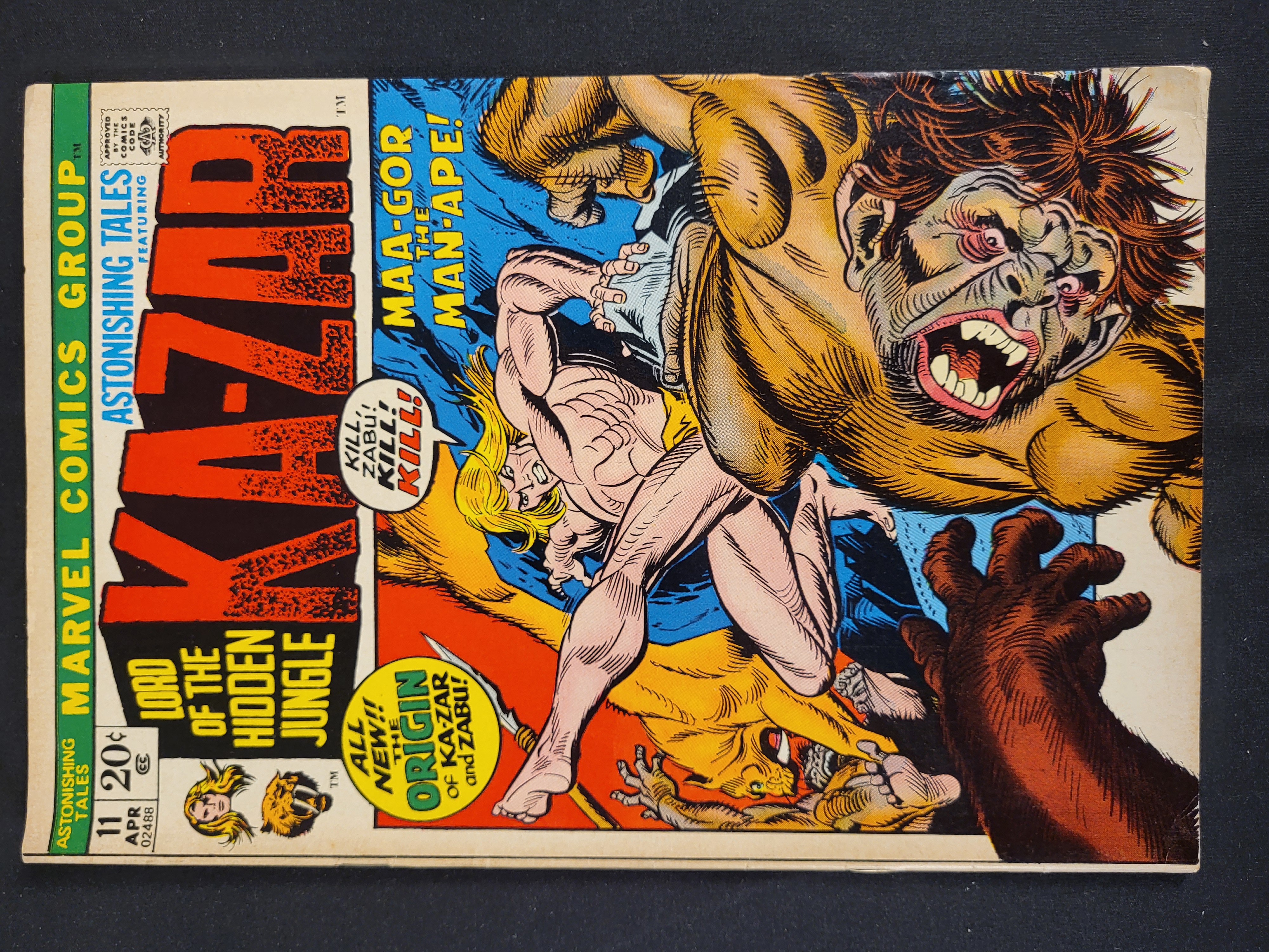 BID PER WHAT YOU SEE IN THE PHOTO, NOT THE AI GENERATED TITLES AND DESCRIPTIONS! A Marvel Comics Group publication of Astonishing Tales issue number 11, dated April 1972. This Bronze Age comic book features Ka-Zar, Lord of the Hidden Jungle, and contains the origin story of Ka-Zar and Zabu. The front cover illustration depicts Ka-Zar in combat with Maa-Gor the Man-Ape, with Zabu the saber-toothed tiger in the foreground. Printed cover details include the 20 cent price, the Comics Code Authority seal, and the Marvel Comics Group header.