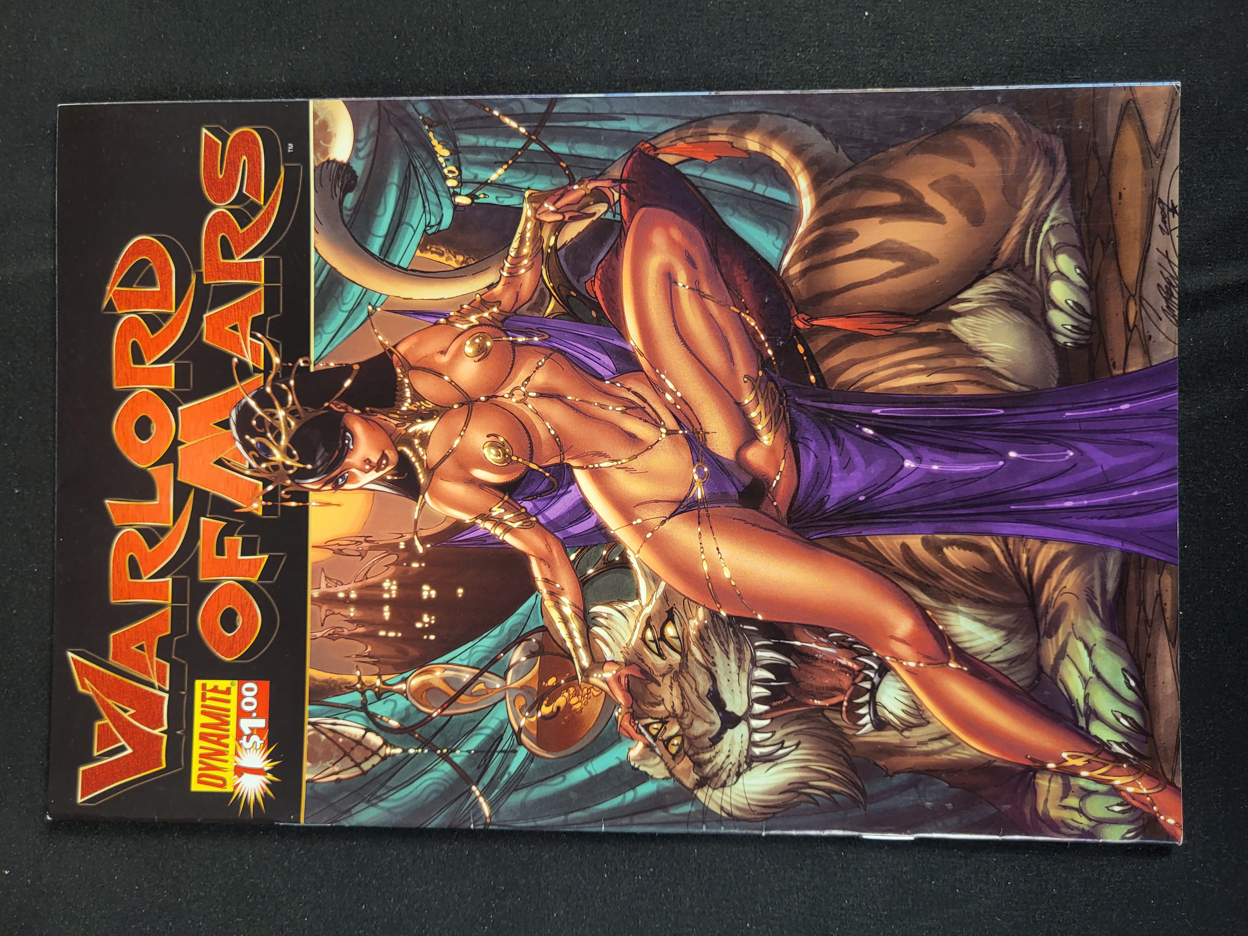 BID PER WHAT YOU SEE IN THE PHOTO, NOT THE AI GENERATED TITLES AND DESCRIPTIONS! Warlord of Mars issue number 2, published by Dynamite Entertainment. This issue features the J. Scott Campbell Variant A cover art. The illustration depicts a female character in gold-toned body jewelry and purple fabric posed with a large feline. The front cover displays the series title, the Dynamite logo, and a 1.00 dollar price point. An artist signature dated 2011 is present on the right side of the cover. The item is a standard format comic book printed on paper.