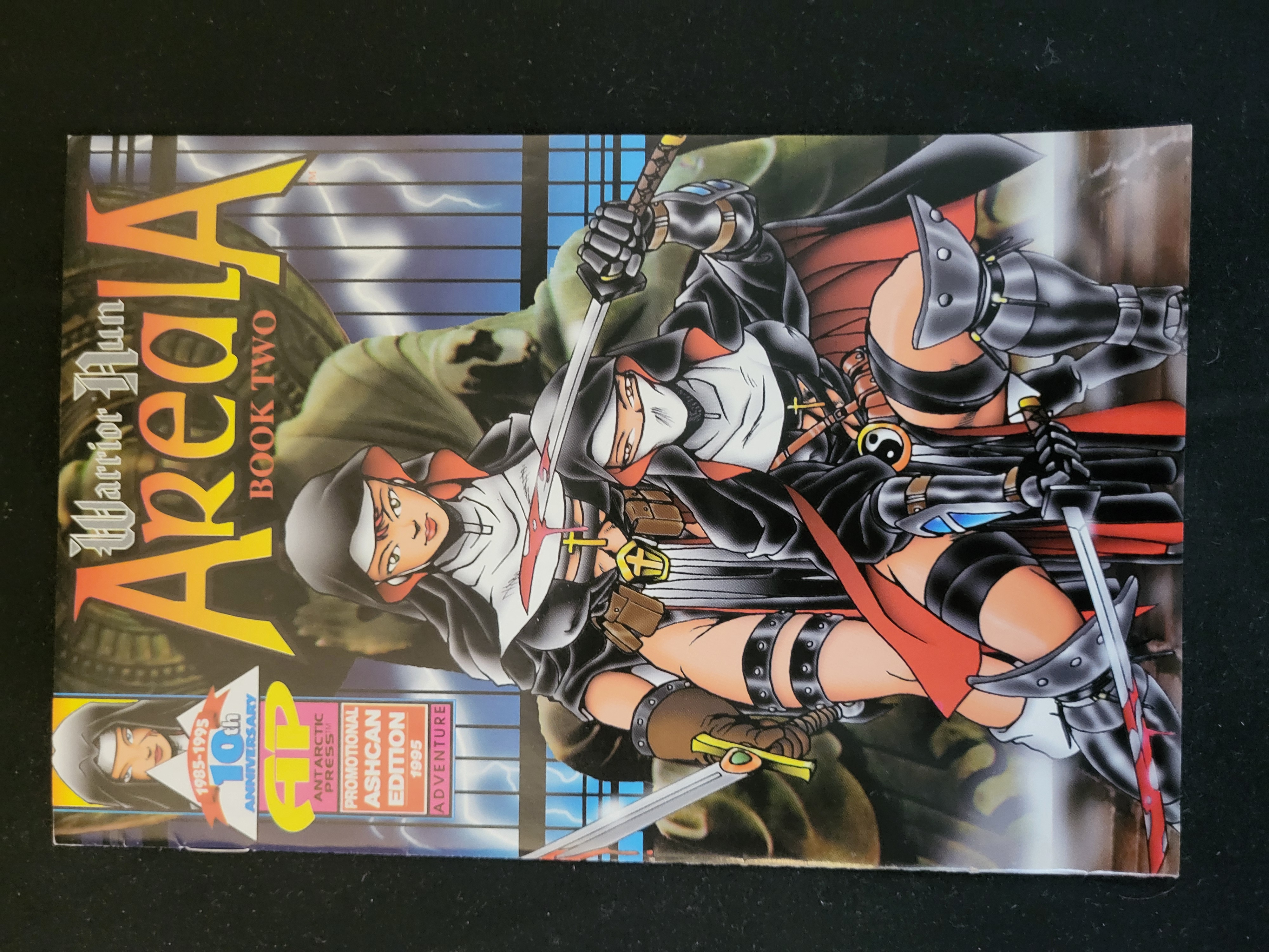 BID PER WHAT YOU SEE IN THE PHOTO, NOT THE AI GENERATED TITLES AND DESCRIPTIONS! This 1995 promotional ashcan edition of Warrior Nun Areala Book Two was published by Antarctic Press. The issue was produced in conjunction with the Antarctic Press 10th Anniversary (1985-1995). The front cover displays manga-influenced color artwork depicting two characters in stylized tactical nun-inspired armor wielding swords. Visible markings on the front cover include the series title, Book Two, Promotional Ashcan Edition 1995 Adventure, and the Antarctic Press AP logo. The publication is a staple-bound comic book.