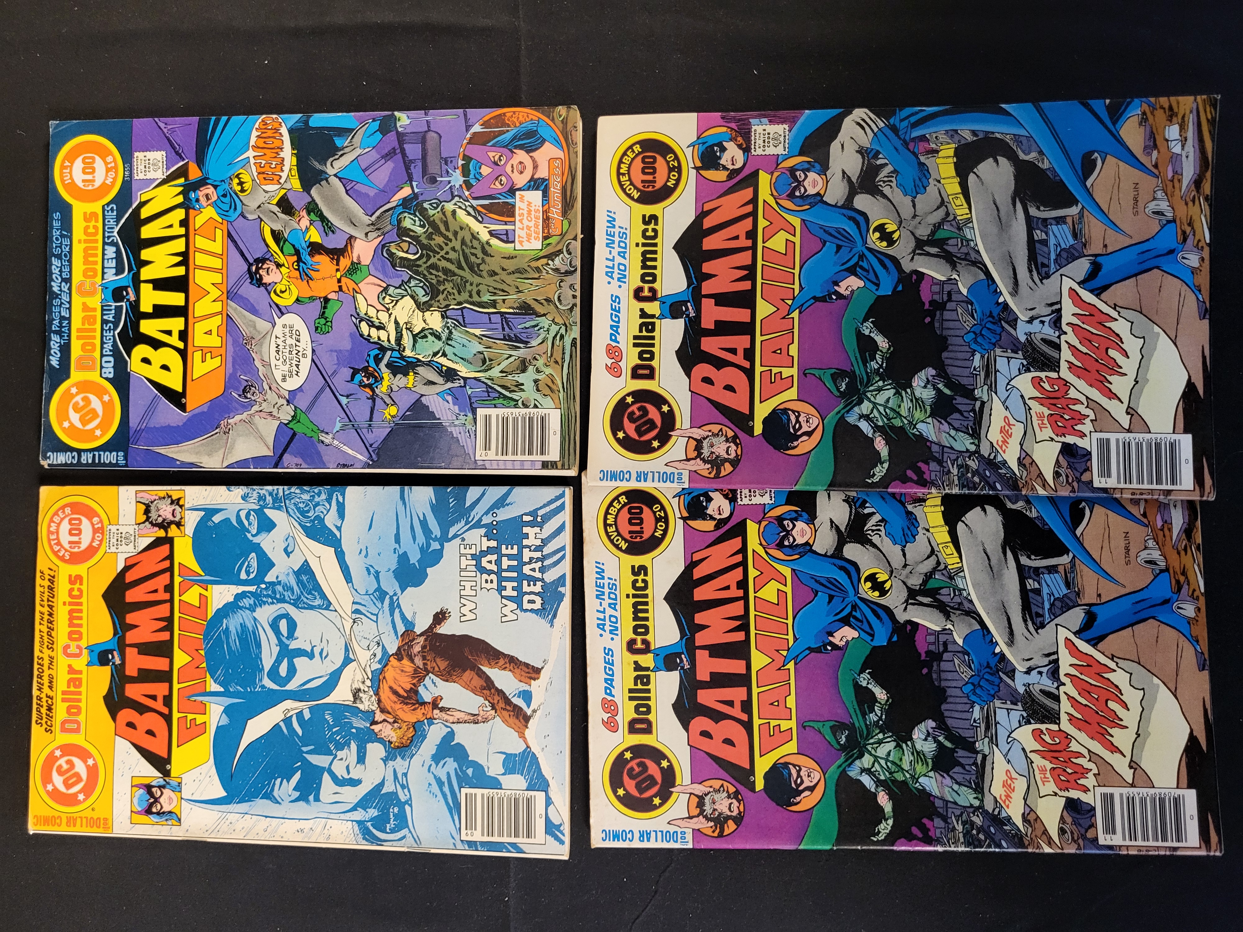 BID PER WHAT YOU SEE IN THE PHOTO, NOT THE AI GENERATED TITLES AND DESCRIPTIONS! A group of vintage DC Comics Batman Family Dollar Comics from the late 1970s. This collection includes issues 18, 19, and 20, featuring characters such as Batman, Robin, Batgirl, the Huntress, and Ragman. These oversized publications display a 1.00 dollar cover price and the circular DC logo. Issue 20 is identified by the appearance of Ragman. The covers exhibit illustrations characteristic of the Bronze Age and include newsstand barcodes.