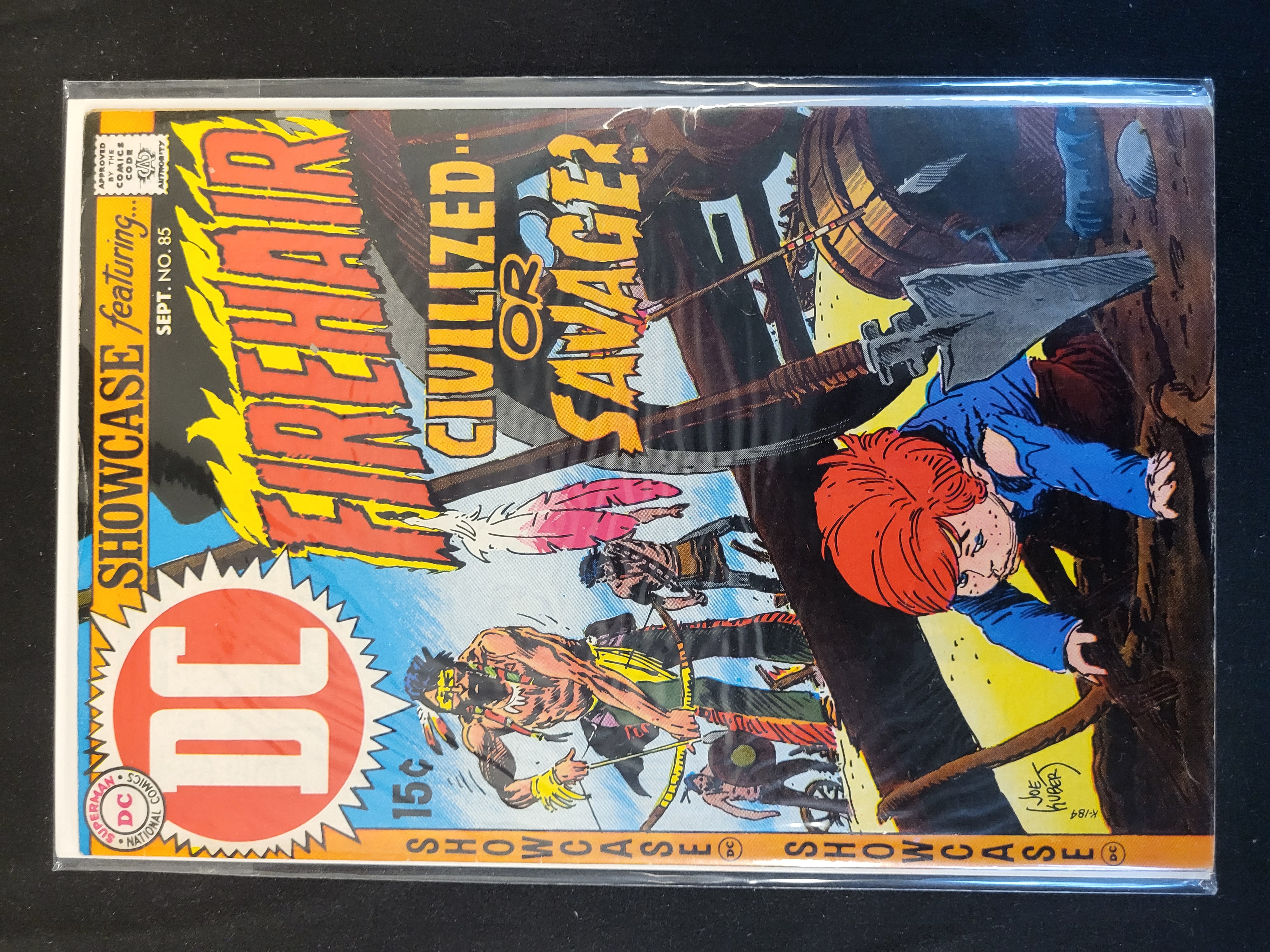 BID PER WHAT YOU SEE IN THE PHOTO, NOT THE AI GENERATED TITLES AND DESCRIPTIONS! Showcase No. 85 published by DC National Comics, dated September 1969. This issue features the first appearance of the character Firehair. The color cover art is illustrated and signed by Joe Kubert, depicting a Western-themed scene with the story title Civilized or Savage?. The front cover displays the original 15-cent price point, the circular DC National Comics logo, and the Comics Code Authority seal. The item is a standard format staple-bound comic book printed on newsprint.
