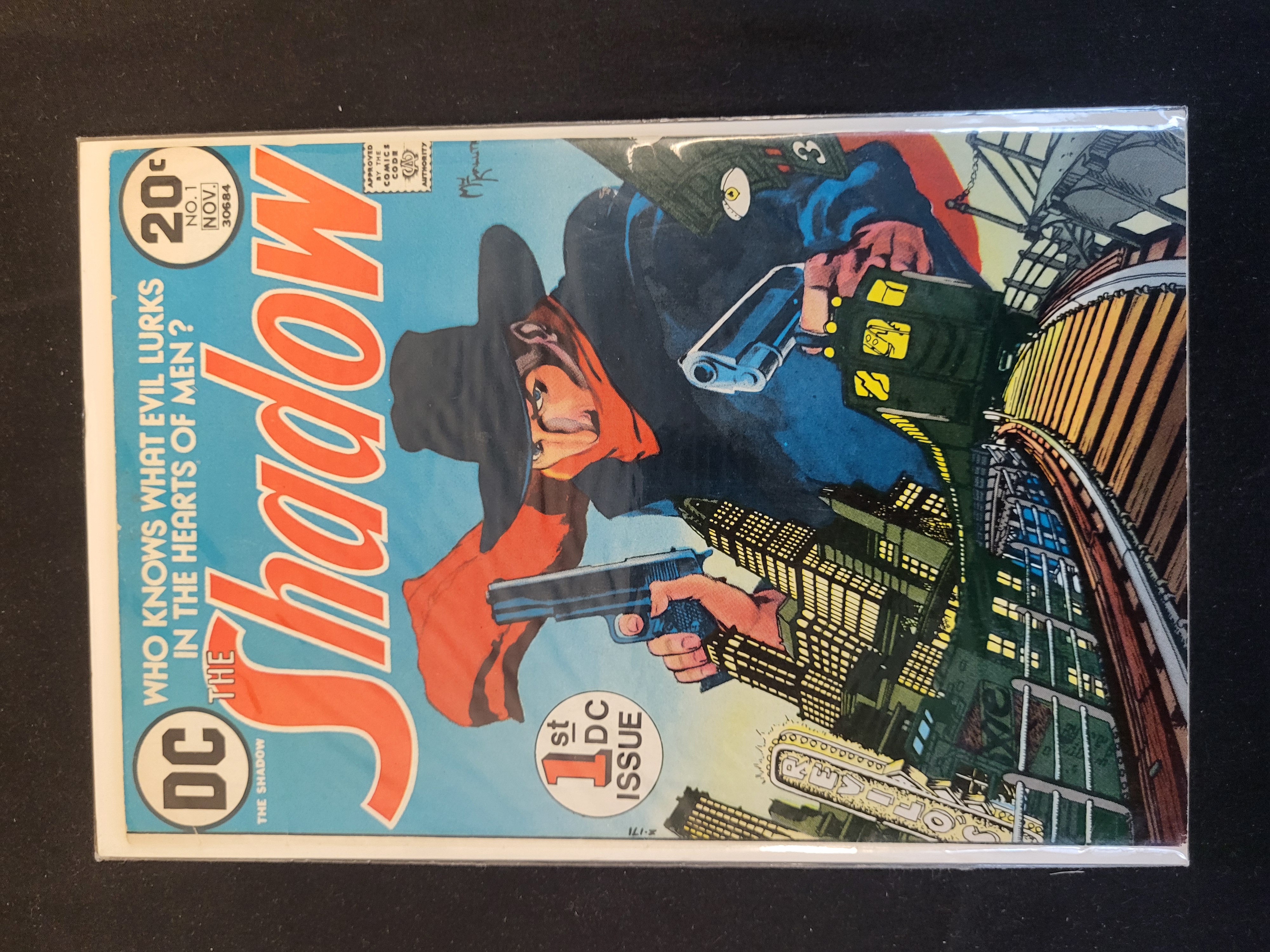 BID PER WHAT YOU SEE IN THE PHOTO, NOT THE AI GENERATED TITLES AND DESCRIPTIONS! The Shadow No. 1, published by DC Comics in November 1973, marks the character’s first appearance under the DC Comics imprint. This Bronze Age comic book is printed on paper and features staple-bound construction. The cover art, by Michael Kaluta, depicts the character with dual pistols over a nighttime cityscape with an elevated train. The cover features the series title in red and orange, a 20 cent price point, the issue number 1, and the date November. The tagline Who Knows What Evil Lurks In The Hearts Of Men? is printed along the left edge. A circular badge identifies the issue as the 1st DC Issue. The Comics Code Authority seal is visible in the upper right corner. This issue contains the story titled The Doom Puzzle!