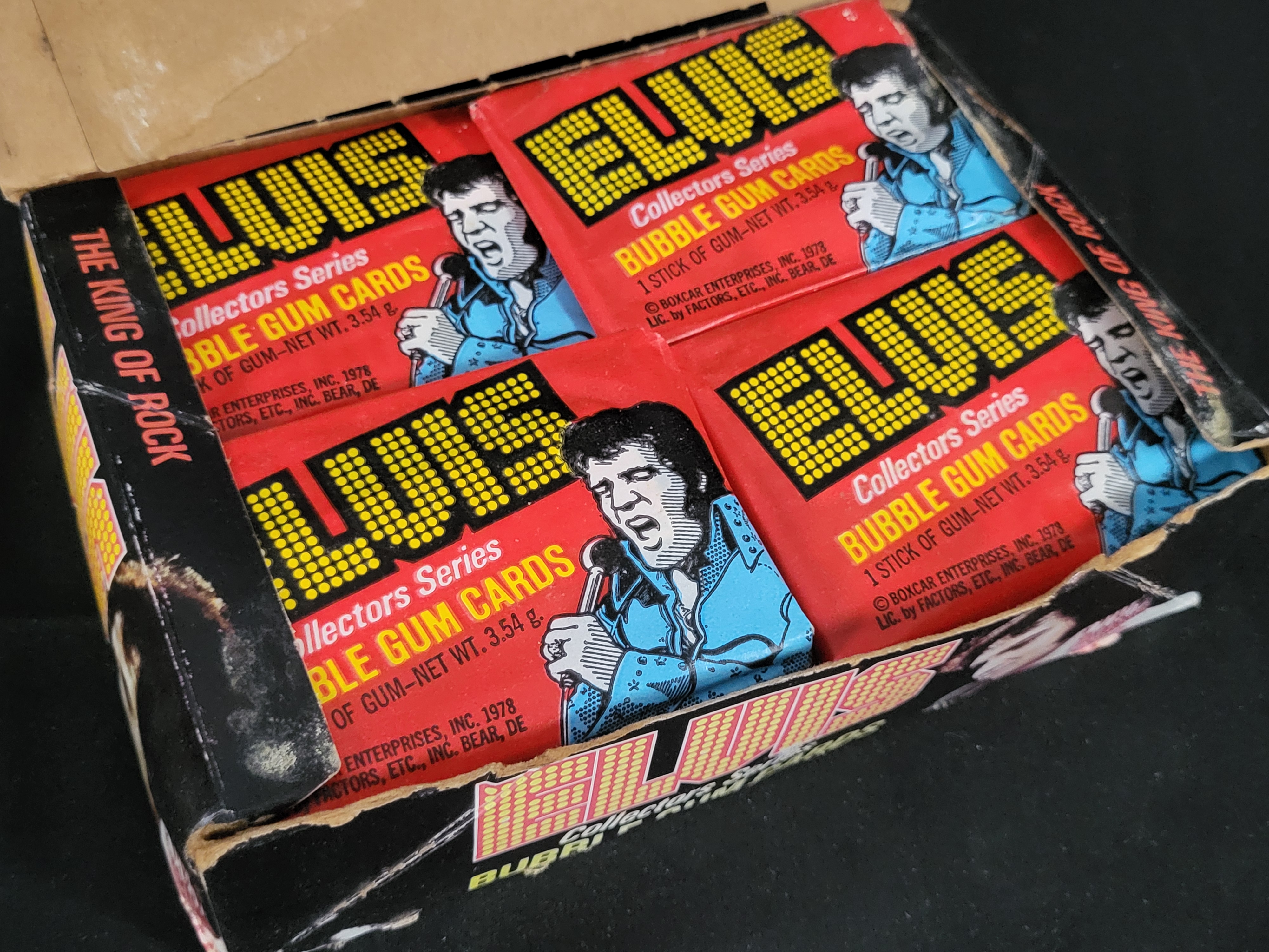 I00181 A Collection of 1978 Boxcar Enterprises Elvis Presley Collectors Series Bubble Gum Cards and Display Box