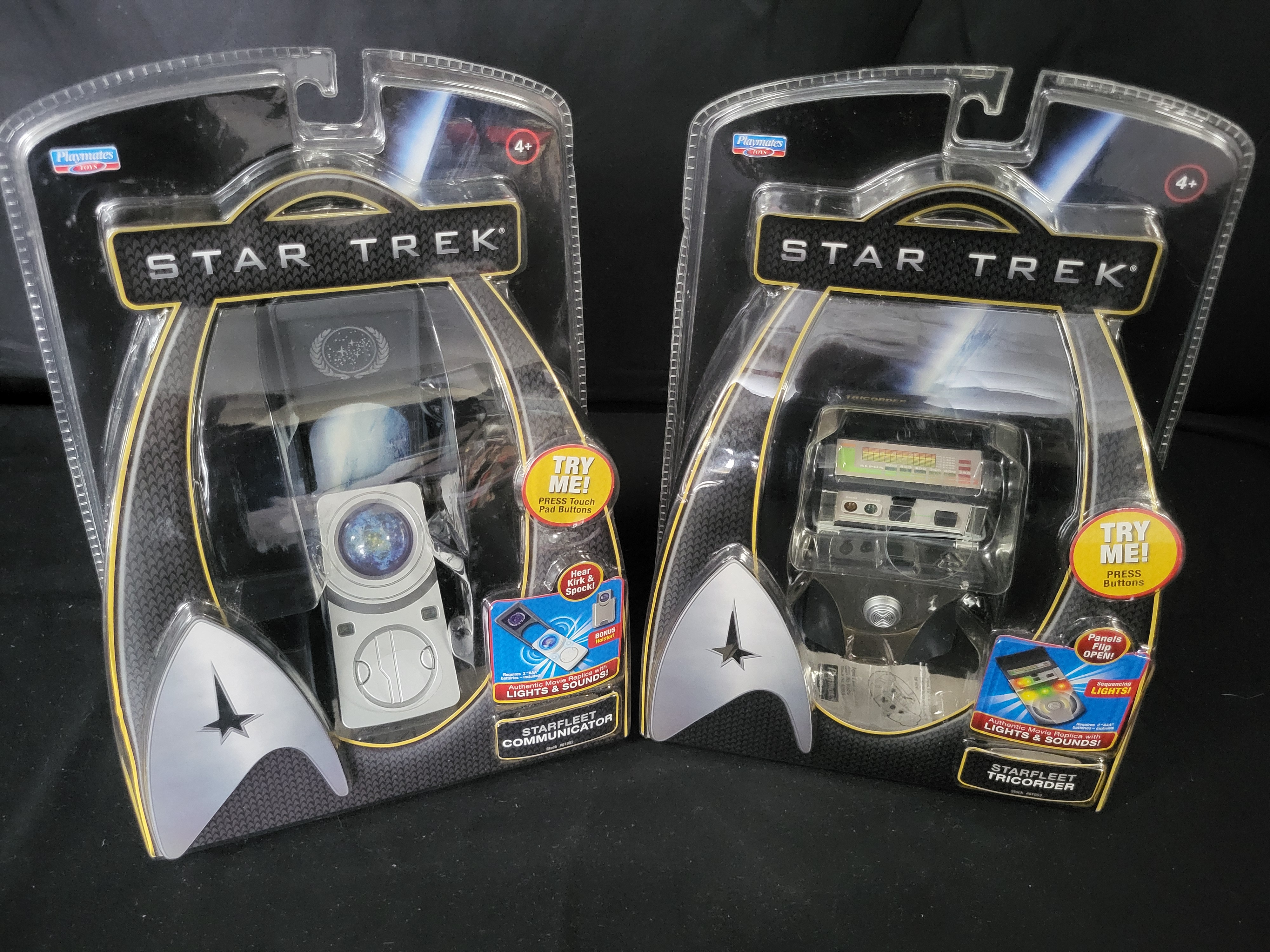 I00190 Two Playmates Toys Star Trek Electronic Starfleet Communicator and Tricorder Prop Replicas