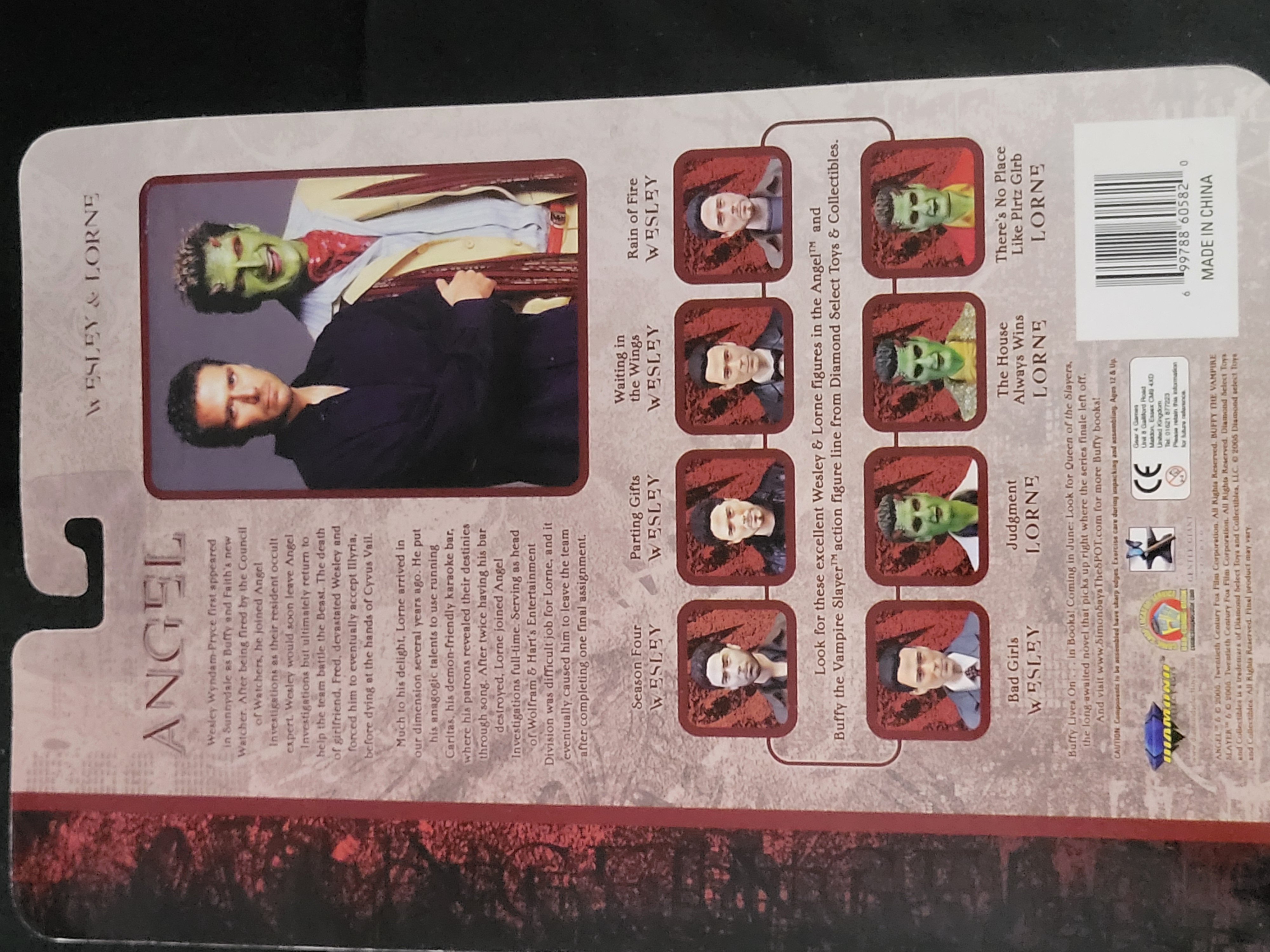 BID PER WHAT YOU SEE IN THE PHOTO, NOT THE AI GENERATED TITLES AND DESCRIPTIONS! A Diamond Select Toys action figure of the character Lorne from the television series Angel, specifically The House Always Wins variant. This item was produced in 2005 as a TimeandSpaceToys.com and Wizard World Chicago exclusive. The figure features green skin and is dressed in a yellow suit with glitter accents. Included accessories are a microphone, two records, and a bottle. The plastic blister pack is signed on the front in silver-tone marker with an inscription that reads Jeremy, Great seeing you in Chicago. Best, Andy Hallett. The signature is attributed to the actor who portrayed the character. The item is housed in its original carded packaging.