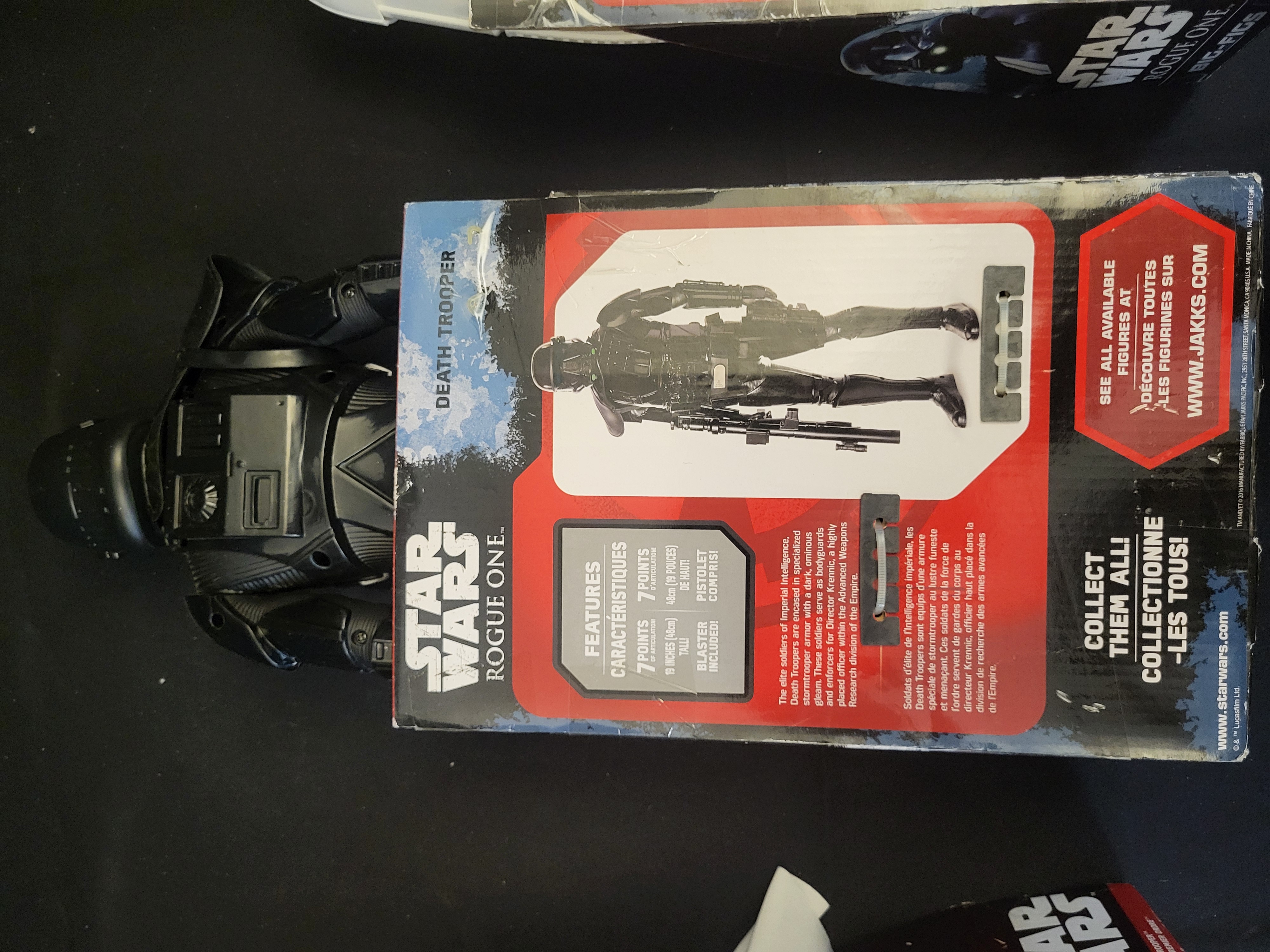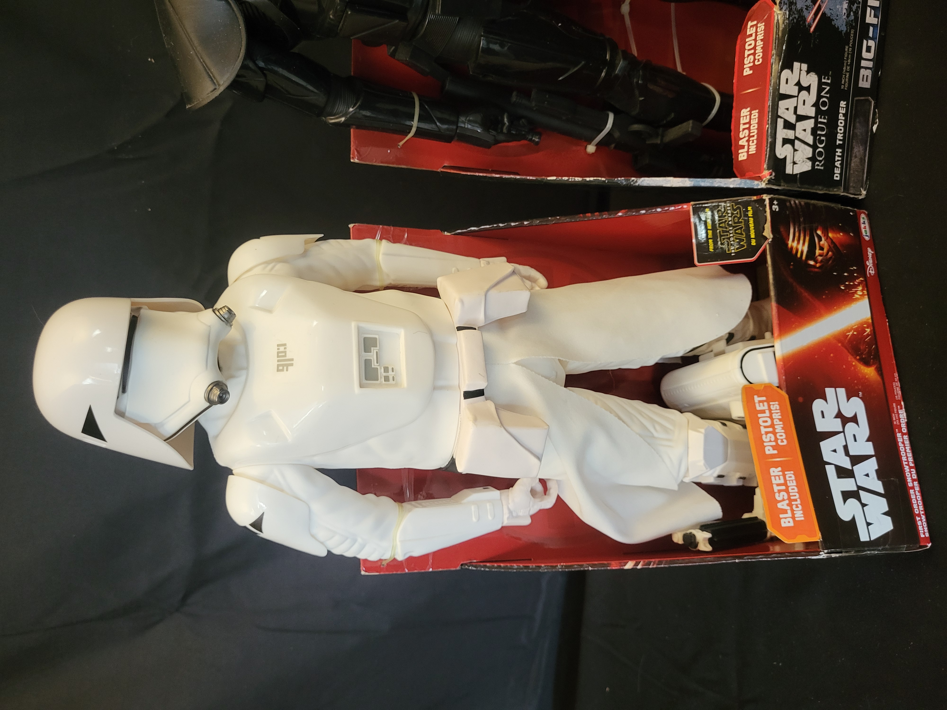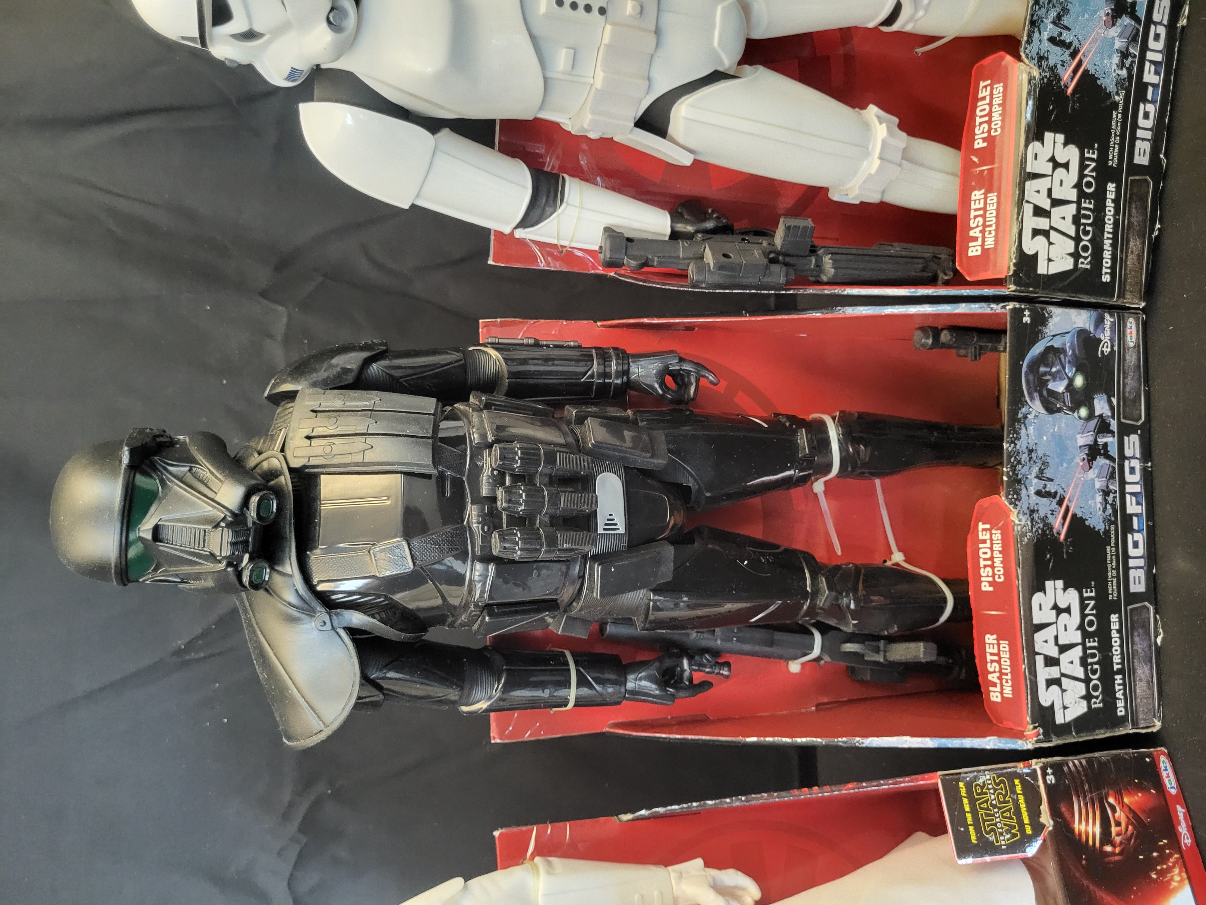 BID PER WHAT YOU SEE IN THE PHOTO, NOT THE AI GENERATED TITLES AND DESCRIPTIONS! A trio of large-scale action figures from the Jakks Pacific Big Figs line, featuring characters from the Star Wars franchise. The collection includes a First Order Snowtrooper from The Force Awakens, along with a Death Trooper and a Stormtrooper from Rogue One. Each figure is constructed of molded plastic and features seven points of articulation. The figures are presented in their original open-front retail packaging and include their respective blaster accessories. The packaging displays official Disney, Star Wars, and Jakks Pacific logos, with descriptive text provided in both English and French.
