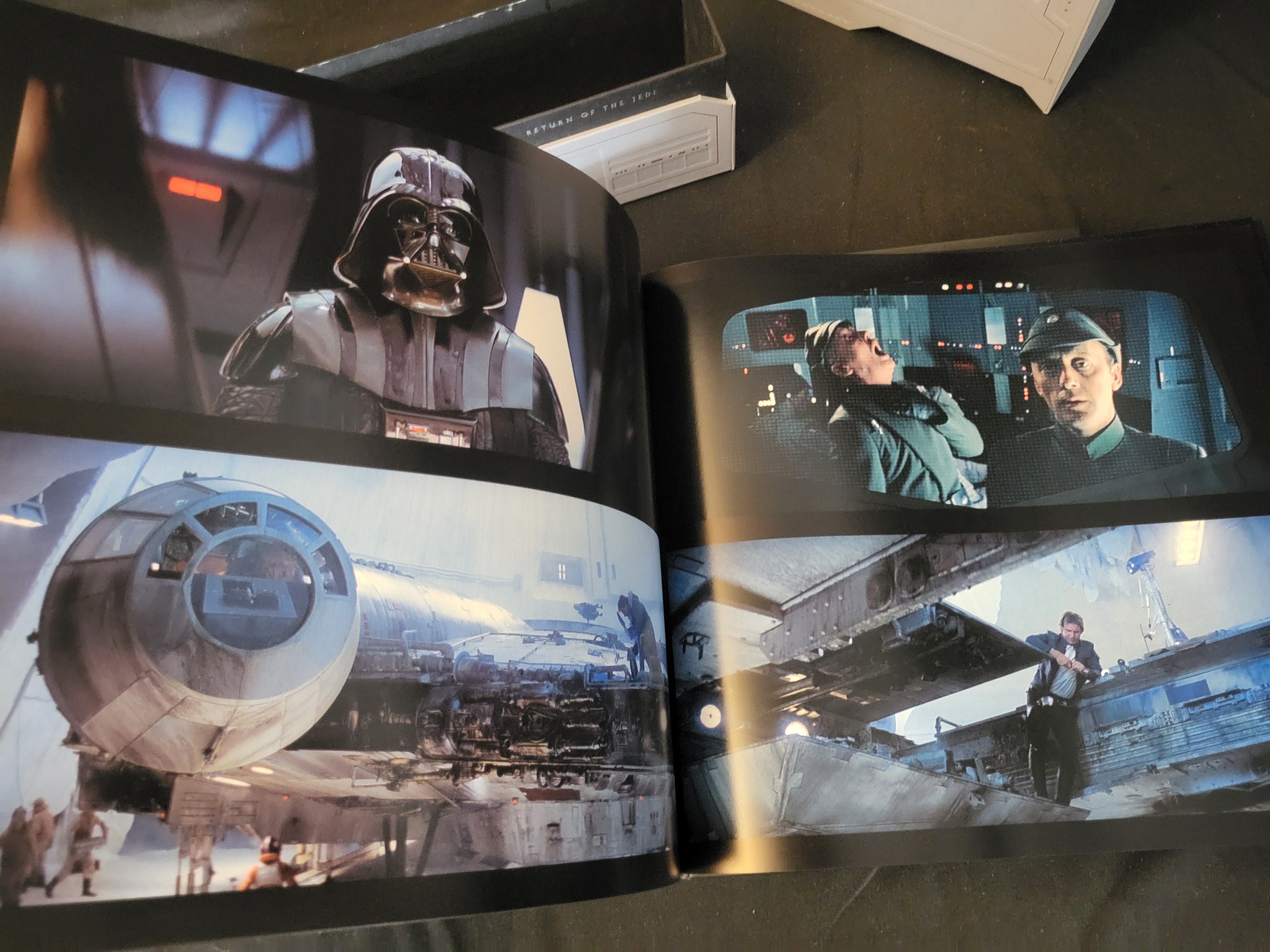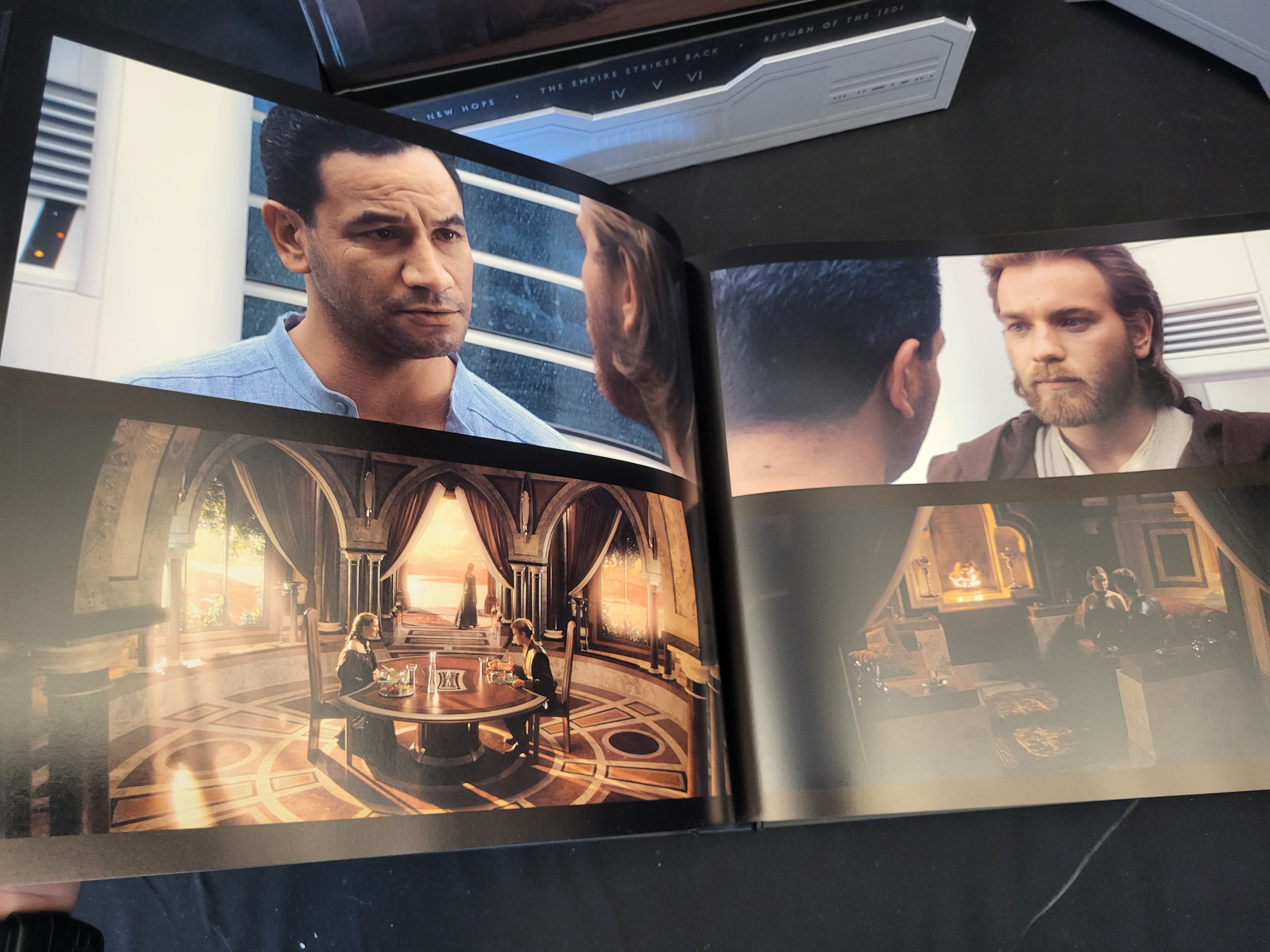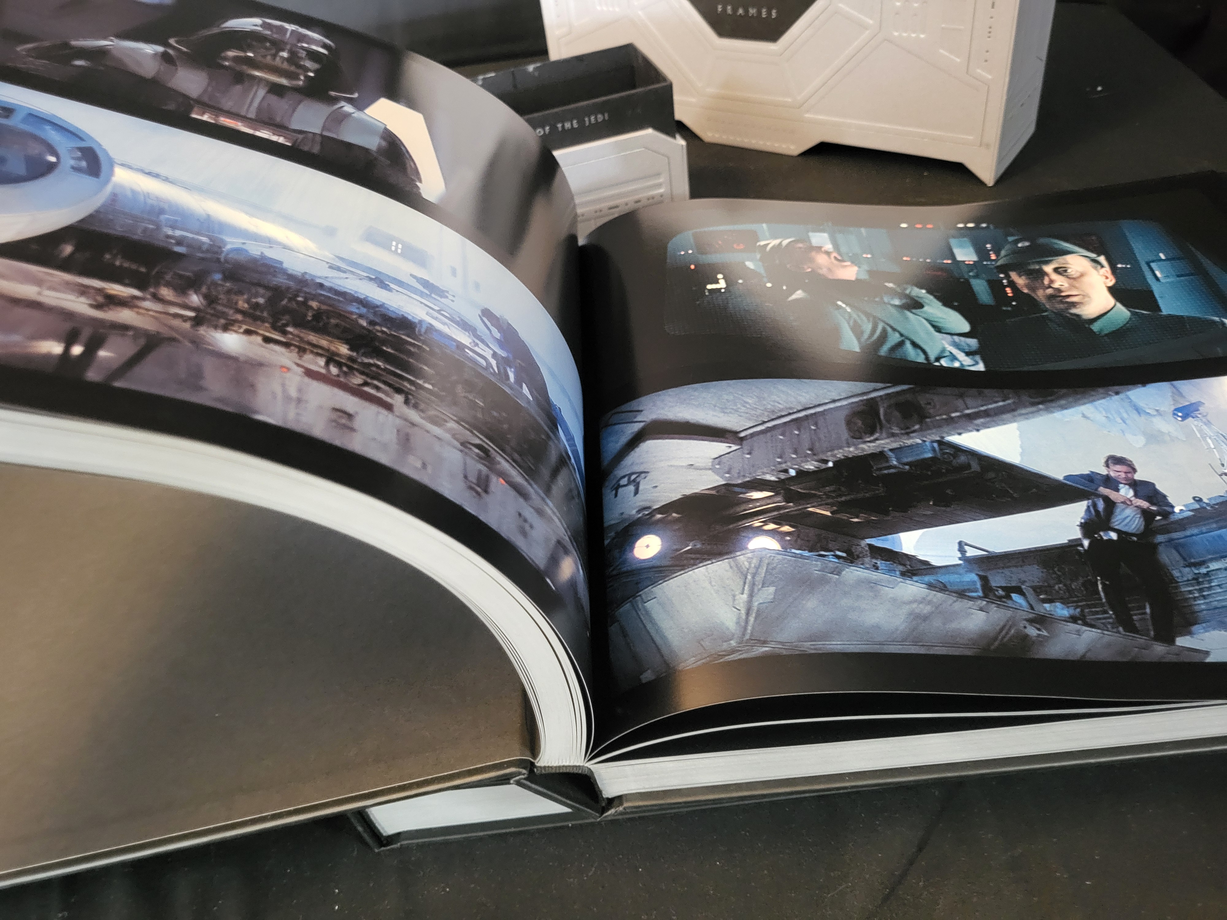 BID PER WHAT YOU SEE IN THE PHOTO, NOT THE AI GENERATED TITLES AND DESCRIPTIONS! This set of Star Wars: Frames hardcover volumes is housed in a large, embossed silver metallic-finish slipcase. The collection includes volumes dedicated to the Prequel Trilogy and the Original Trilogy, specifically A New Hope, The Empire Strikes Back, and Return of the Jedi. Each volume contains high-resolution cinematic still frames printed on heavy, glossy paper. The slipcase features a central black octagonal logo with geometric embossed detailing. The interior pages feature full-color imagery from the films.
