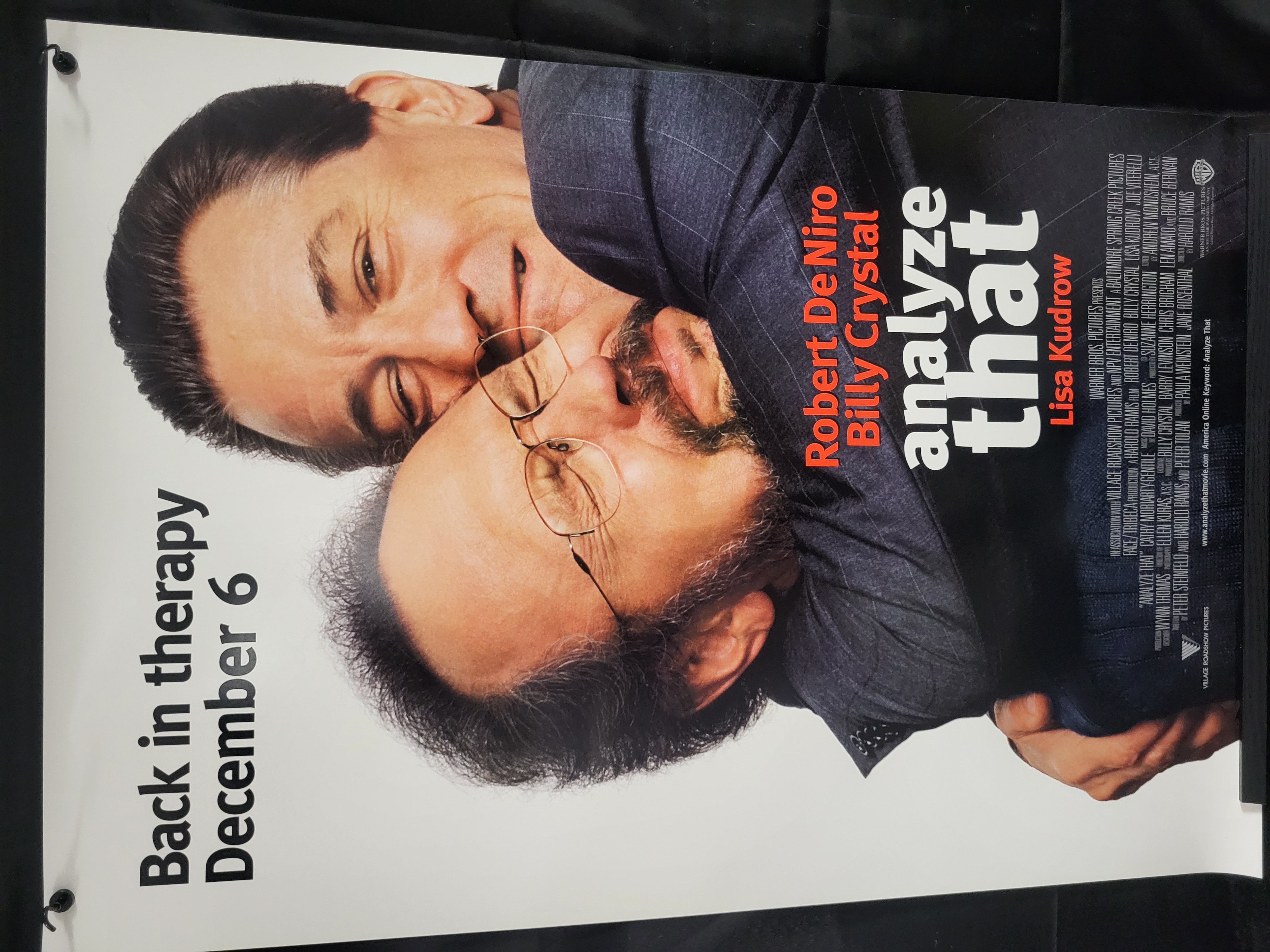 BID PER WHAT YOU SEE IN THE PHOTO, NOT THE AI GENERATED TITLES AND DESCRIPTIONS! This original theatrical movie poster for the 2002 film Analyze That is printed on paper and features a large color promotional photograph of lead actors Robert De Niro and Billy Crystal. The layout includes the tagline Back in therapy December 6 on the left side, with the film title analyze that rendered in bold white and orange typography. The names of stars Robert De Niro, Billy Crystal, and Lisa Kudrow are printed above the title. A standard cinematic credit block is located in the lower right corner, containing production and distribution information for Warner Bros. Pictures and Village Roadshow Pictures.